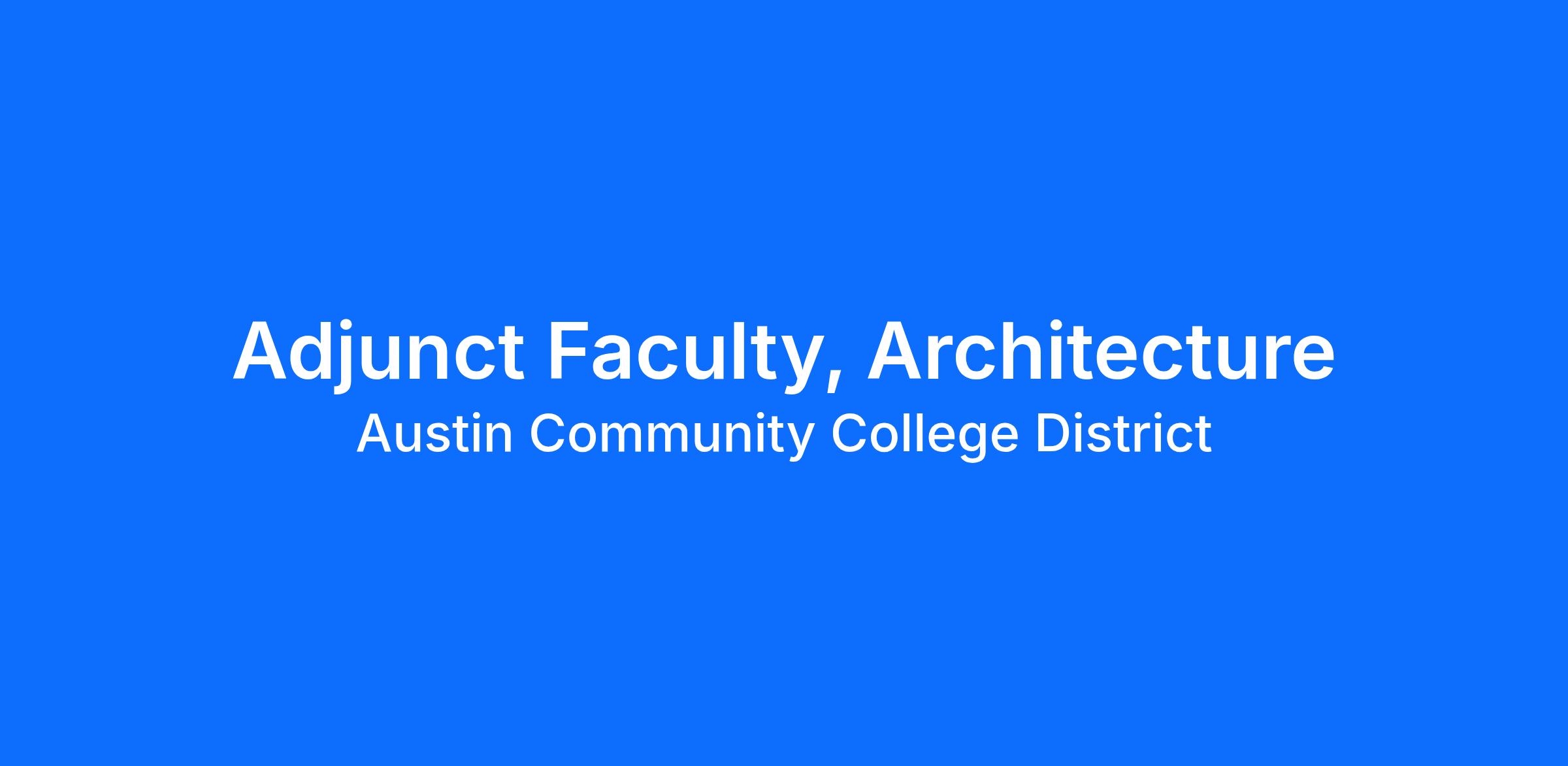 Adjunct Faculty, ArchitectureJob Description Summary:
