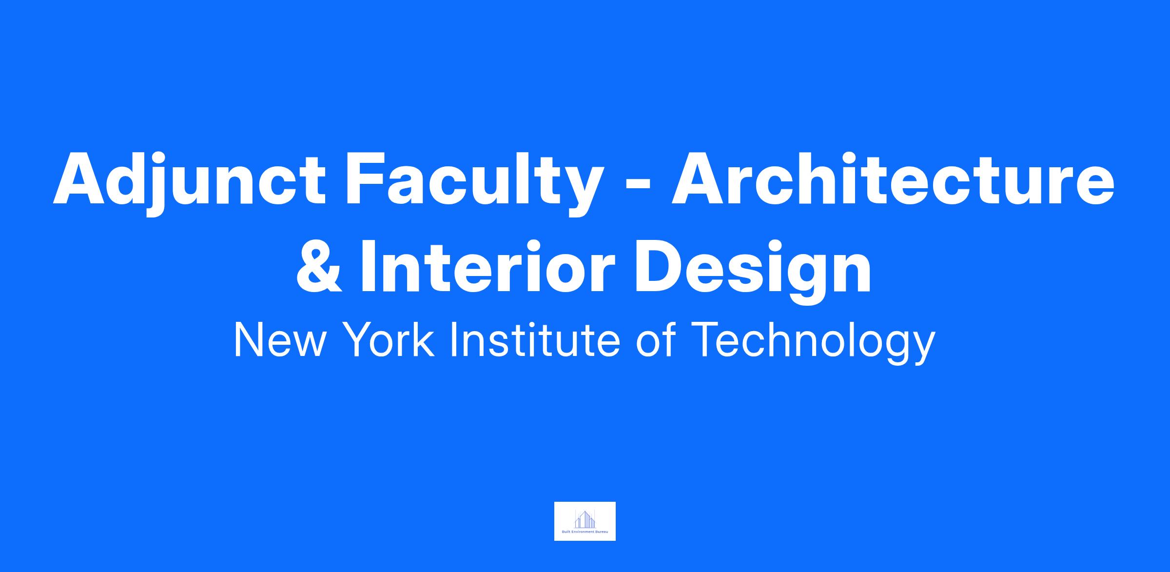 The School of Architecture and Design (SoAD) at New York Tech invites applications for part-time Adjunct faculty positions for daytime and evening courses in the Architecture and Interior Design departments at the NYC and Long Island campuses.