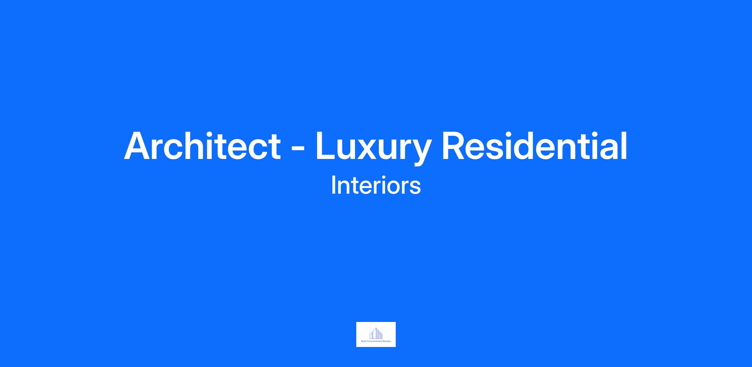 Are you an architect passionate about luxury residential design?