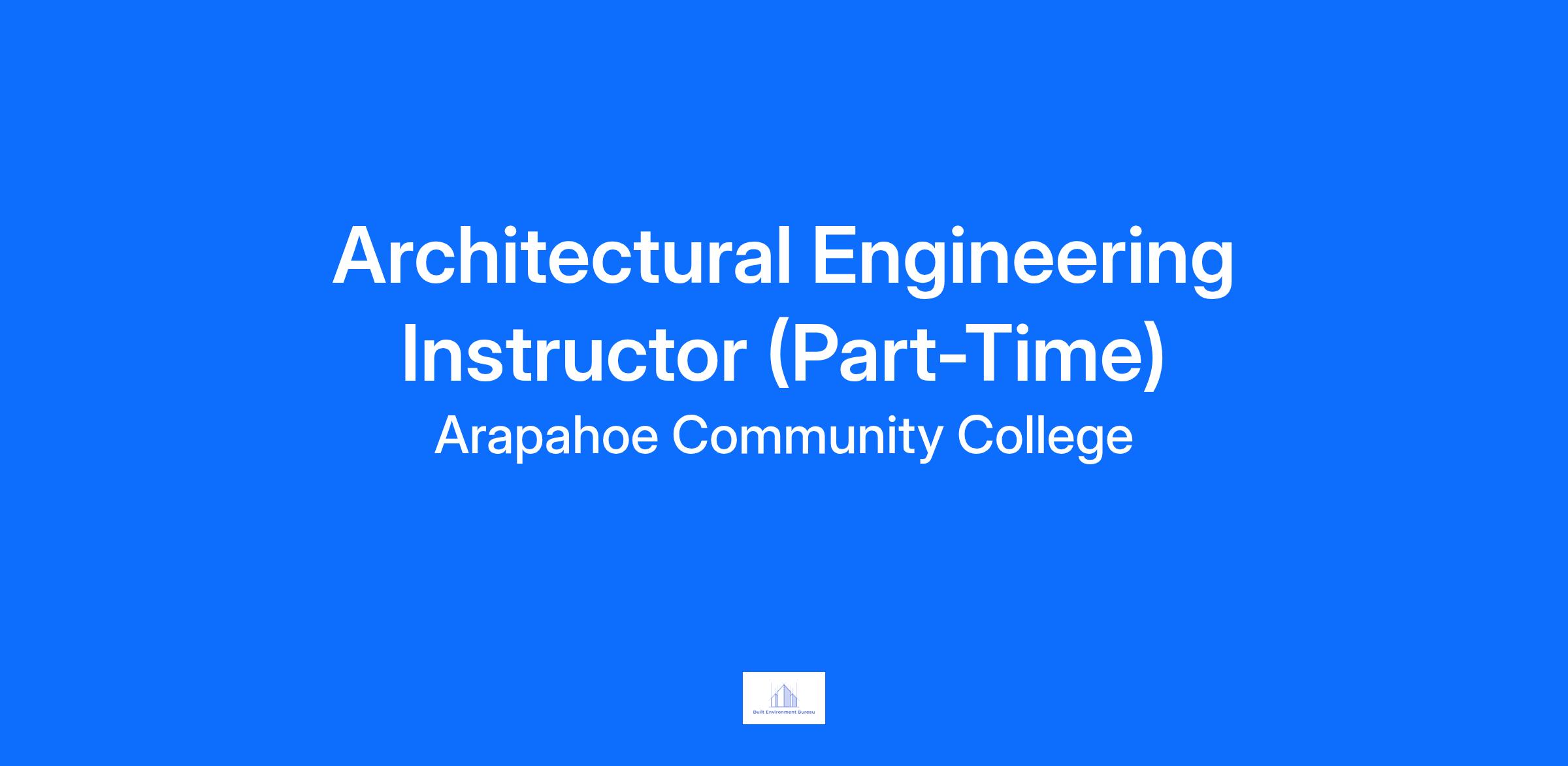 The Art & Design Department at Arapahoe Community College is accepting applications for part-time Instructors to teach in the Architectural Studies Program during the upcoming Spring semester.