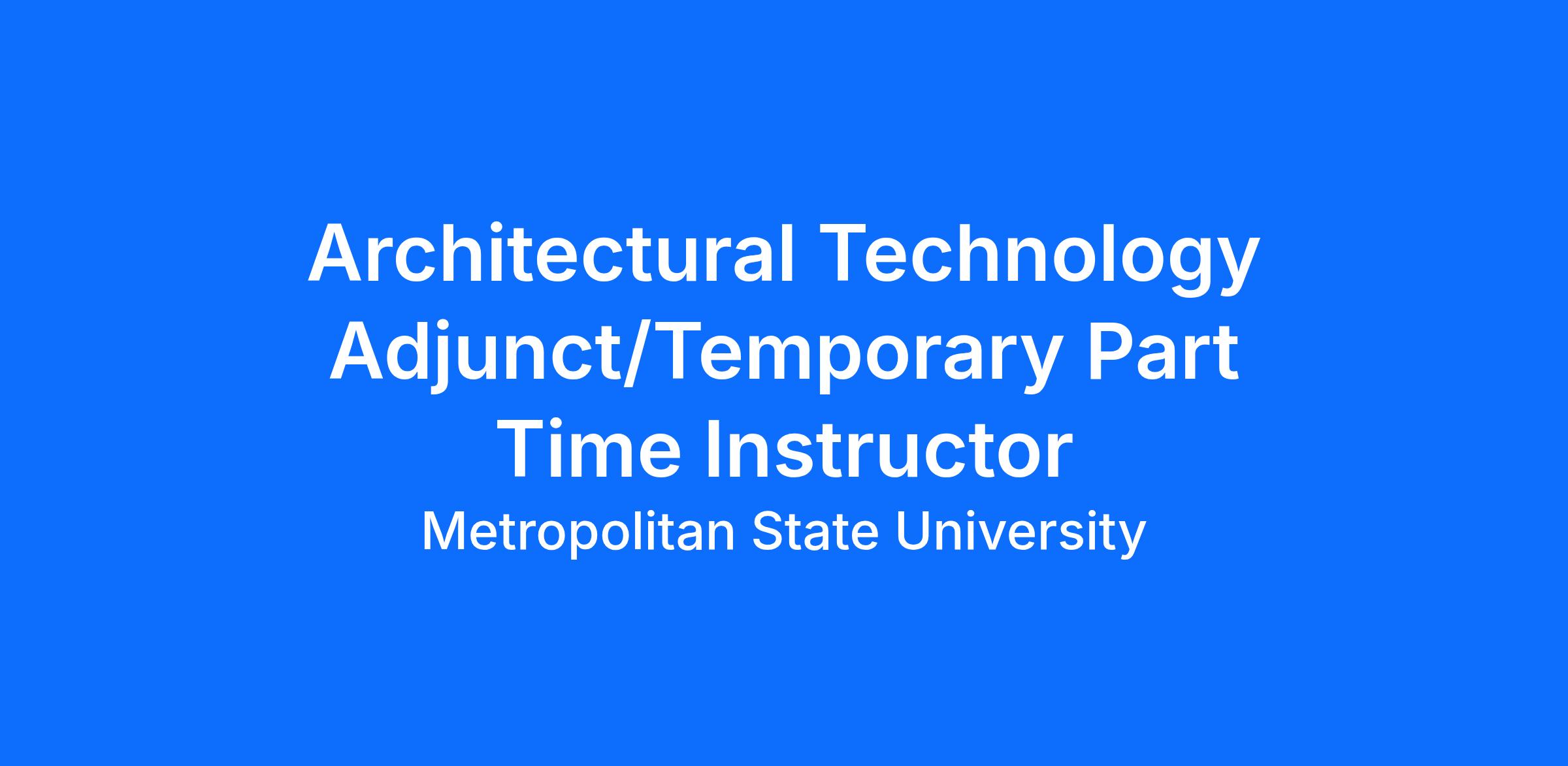 Architectural Technology Adjunct/Temporary Part Time InstructorInstitution: