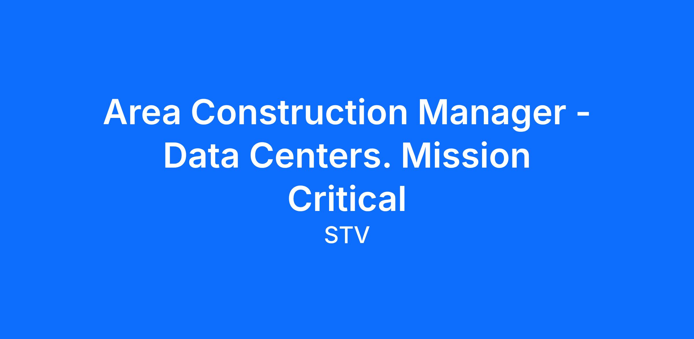 STV is seeking a Area Construction Manager will be part of the team responsible for the development of Data Center Projects. The Construction Manager will manage overall project objectives including design and construction within approved budgets.