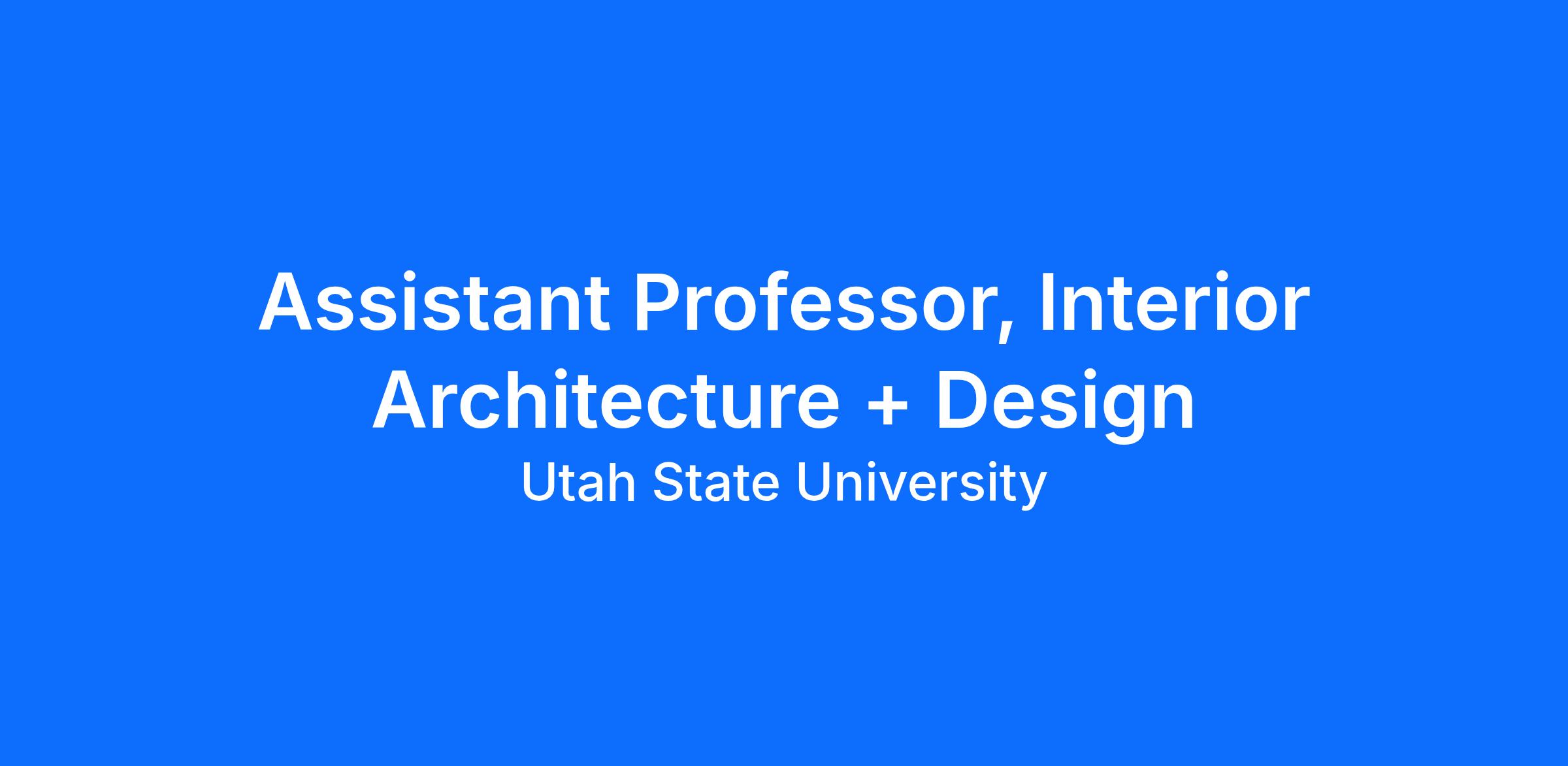 The Department of Art and Design at Utah State University announces a nine-month, tenure-track position for an Assistant Professor in our Interior Architecture & Design program. The Interior Architecture and Design program at Utah State University is accredited by the Council for Interior Design Accreditation (CIDA), making it the first program in the state to receive this recognition. It has established a strong reputation for winning national and international design competitions. Additionally, the program is ranked eighth in the country for Interior Design Education based on value.