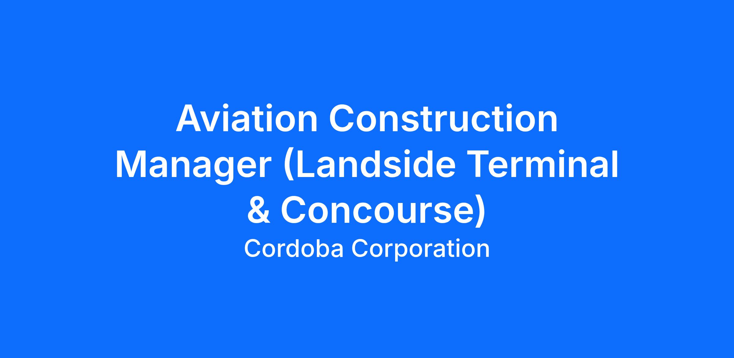 Cordoba Corporation is a leading engineering and design firm based in California. We are seeking an Aviation Construction Manager (Landside Terminal & Concourse) to join our Facilities Sector. The Construction Manager is responsible for managing the scope, cost, schedule and operational interfaces of all design and construction-related activities for the program. The Construction Manager will be focused on schedule certainty, budget delivery, and making sure that construction work meets the required quality standards while enforcing a strong health, safety, and environmental culture on the project. The Construction Manager will support the development and implementation of design, construction, testing, commissioning, turnover plans, impacts to the operations, ensuring that risk mitigation for construction activities is optimized, working and coordinating with stakeholders, and ensuring LAWA standards are adhered to.