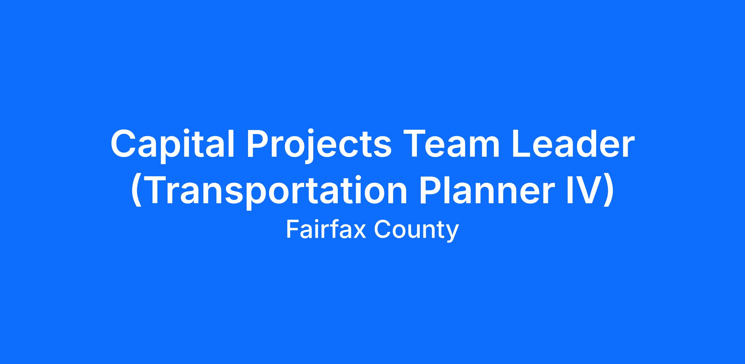 Since 1977, the Fairfax County Department of Transportation (FCDOT) has served the Fairfax County community by enhancing mobility, safety, and the quality of life of residents, businesses, and visitors through planning, coordinating, funding, implementing, and sustaining a multimodal transportation system. FCDOT is seeking a motivated, highly qualified, and public service-oriented Transportation Planner IV to join the Active Transportation, Capital Projects and Traffic Engineering Division. Under general supervision of the section chief, this position will lead a team responsible for providing overall coordination of complex Capital Projects plans and studies with other county, state and federal agencies, as well as residents and elected officials. This includes multimodal projects, such as intersection, roadway, pedestrian, bicycle, transit, and parking facilities. In a dynamic and quickly evolving environment, this position will provide a challenging and rewarding experience for an individual invested in achieving the County’s transportation goals.
