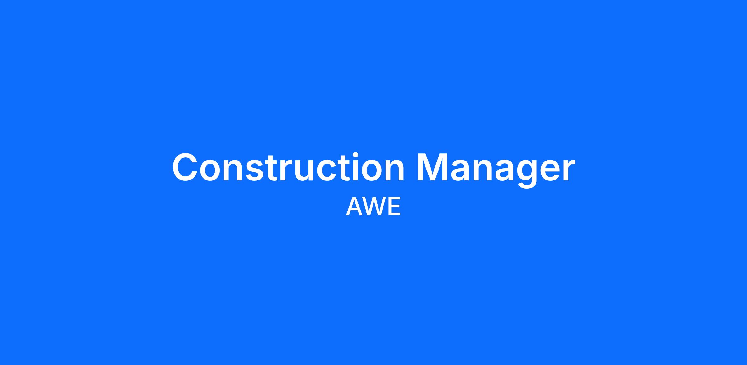 AWE is currently recruiting for a Client Construction Manager, to be responsible for delivering both pre-construction and delivery of construction projects and associated activities.