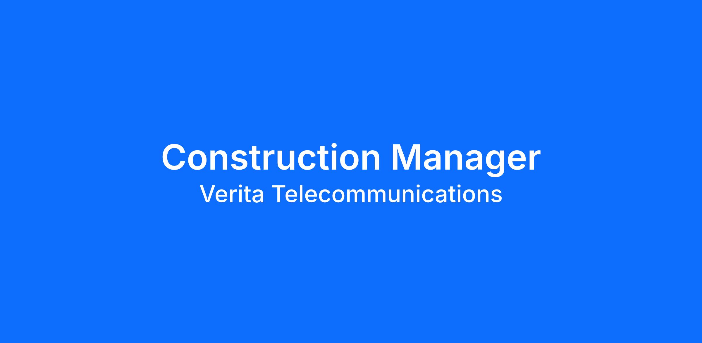 Verita Telecommunications (VTC) seeks a talented, motivated, and quality-minded Construction Manager to join our growing team. This is an opportunity to be part of something special and establish your professional career with a company known for quality and service within the telecommunications industry.
