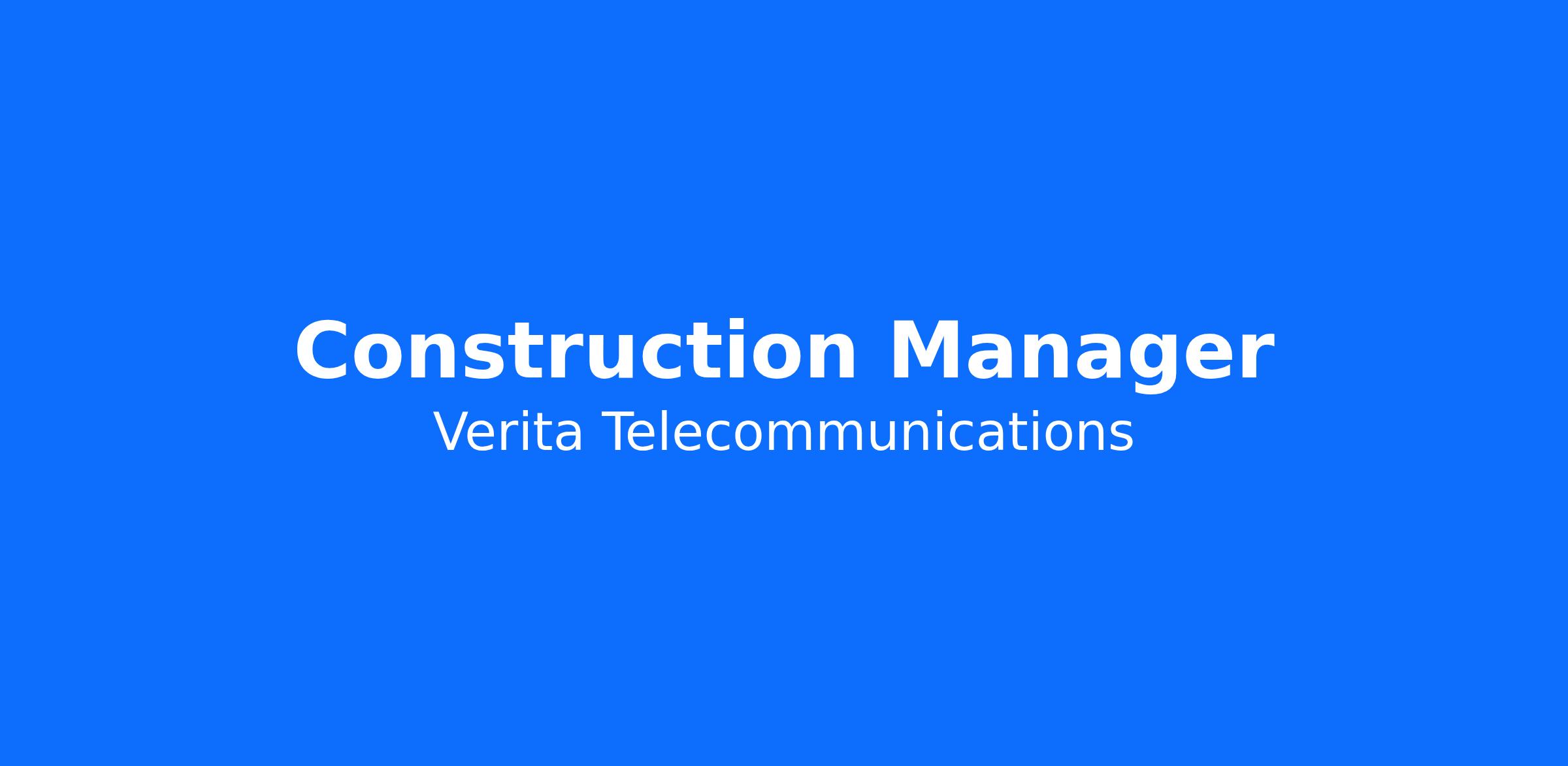 Verita Telecommunications (VTC) seeks a talented, motivated, and quality-minded Construction Manager to join our growing team. This is an opportunity to be part of something special and establish your professional career with a company known for quality and service within the telecommunications industry.