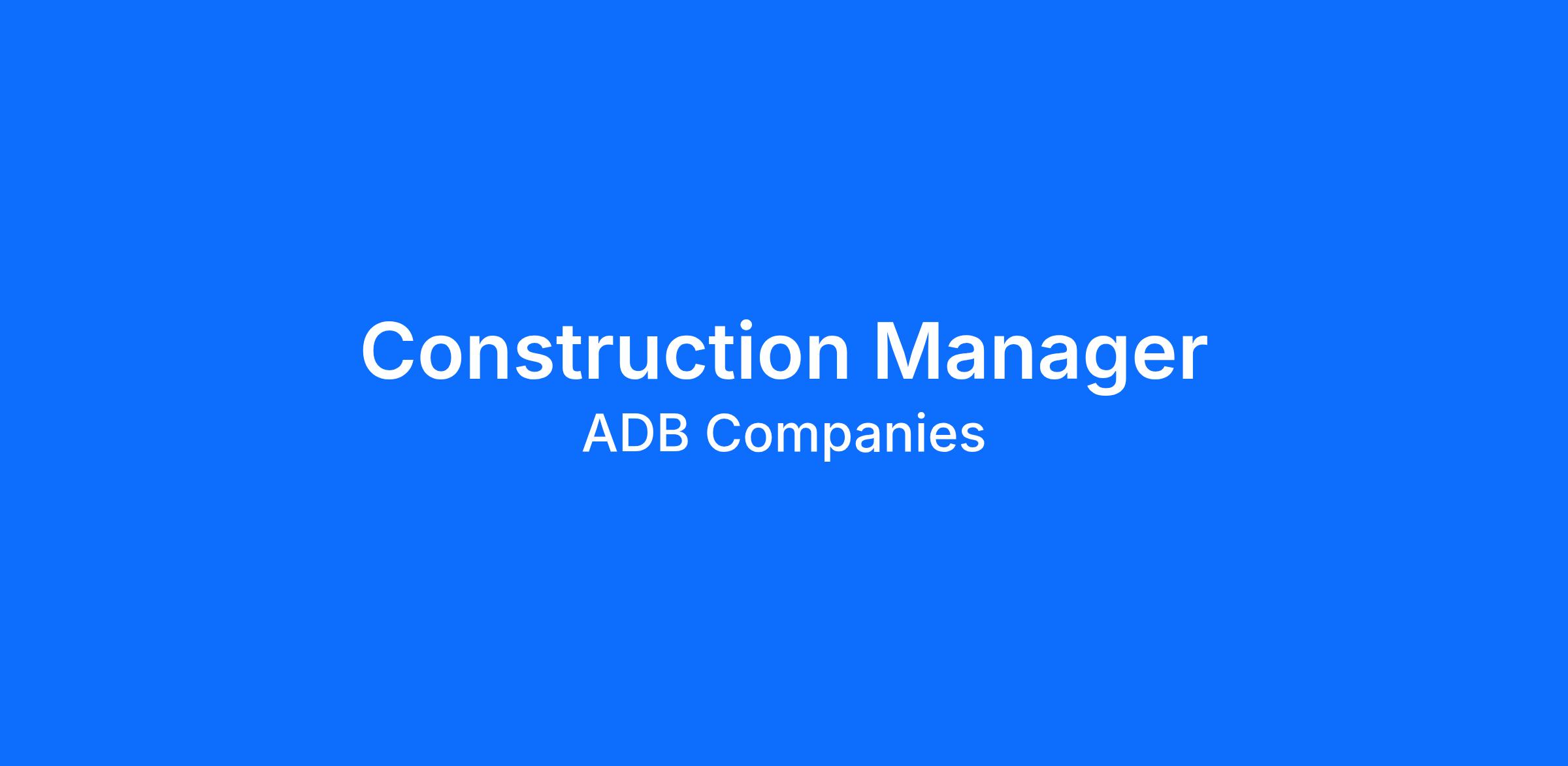 ADB is seeking a Construction Manager to oversee the day-to-day planning, execution and completion of construction projects. This role ensures that all construction activities are performed safely, on schedule, within budget and to the highest quality standards. The ideal candidate brings a proven track record of managing large-scale construction projects, with a strong work ethic and an ALL IN mindset to drive results.