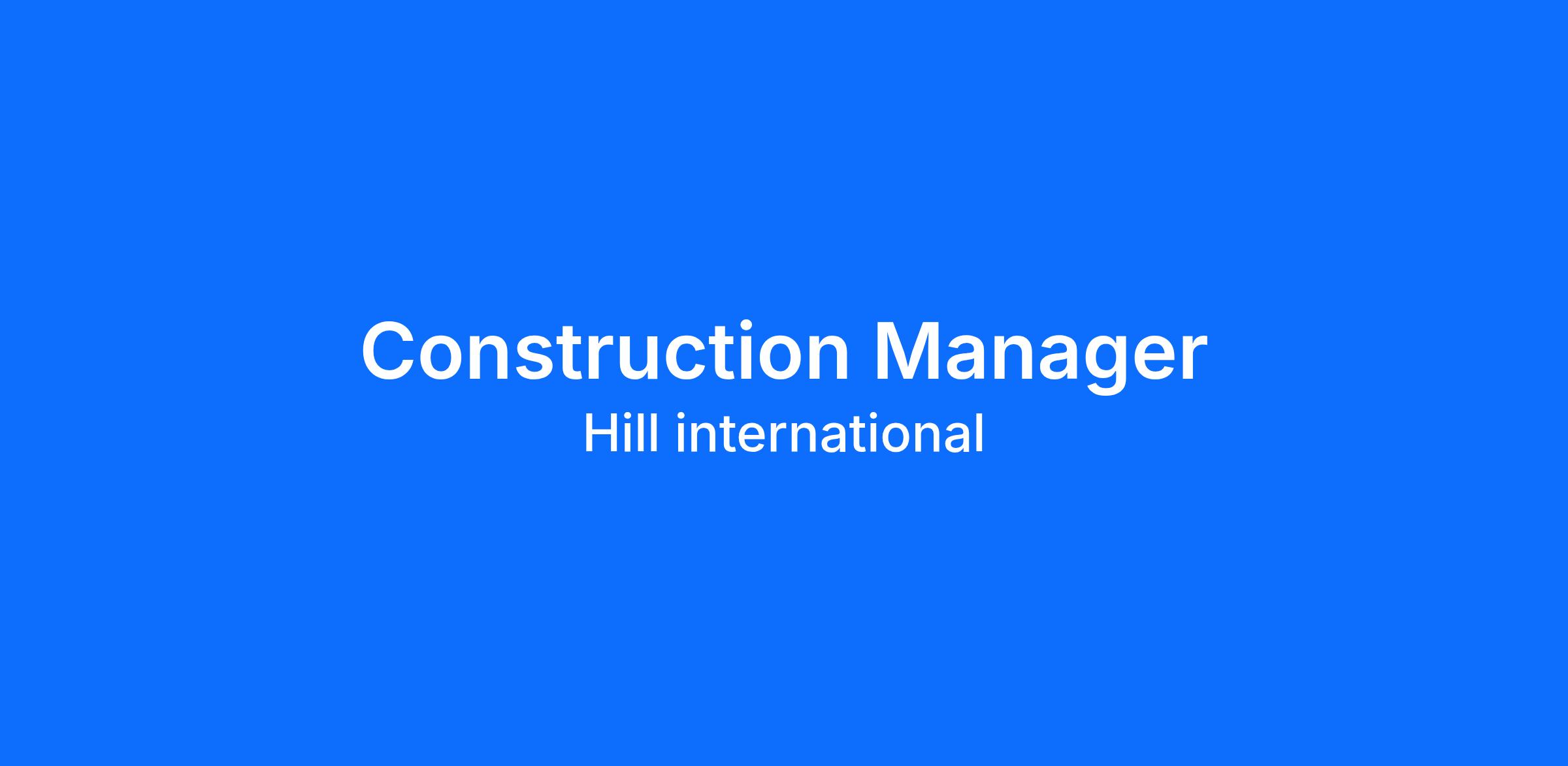 DescriptionHill International is seeking a Construction Manager in Austin, Texas