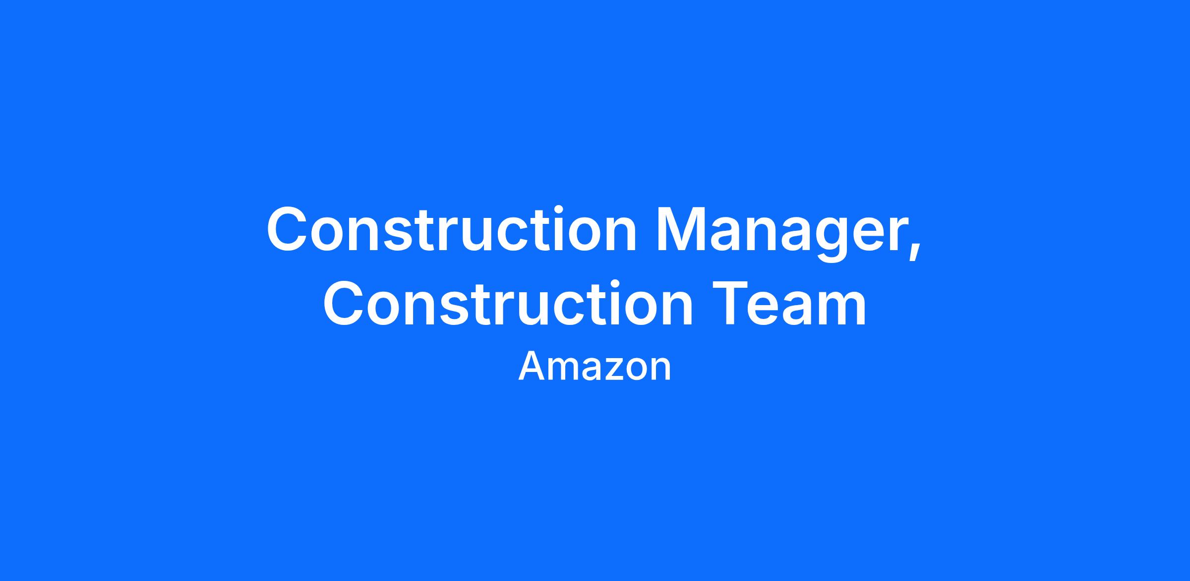 Construction Managers will also handle the implementation of the facility network infrastructure; including The construction projects include new builds, retrofits, and expansions. Construction Managers are required to perform detailed deep dive reviews of job budgets and programs to identify and resolve any discrepancies, including information in contractor bid packages. Construction Managers will partner with internal customers and external stakeholders such as consultants and contractors to earn their trust and engage as a team to deliver the project in the most efficient manner. The Construction Manager will serve as Amazon's representative and direct point of interface with Developers and General Contractors, as well as the primary integrator between construction and other Amazon stakeholders responsible for equipping, furnishing, and operating our FCs. This opportunity combines construction engineering, planning, project management, facilities management, and contract management.