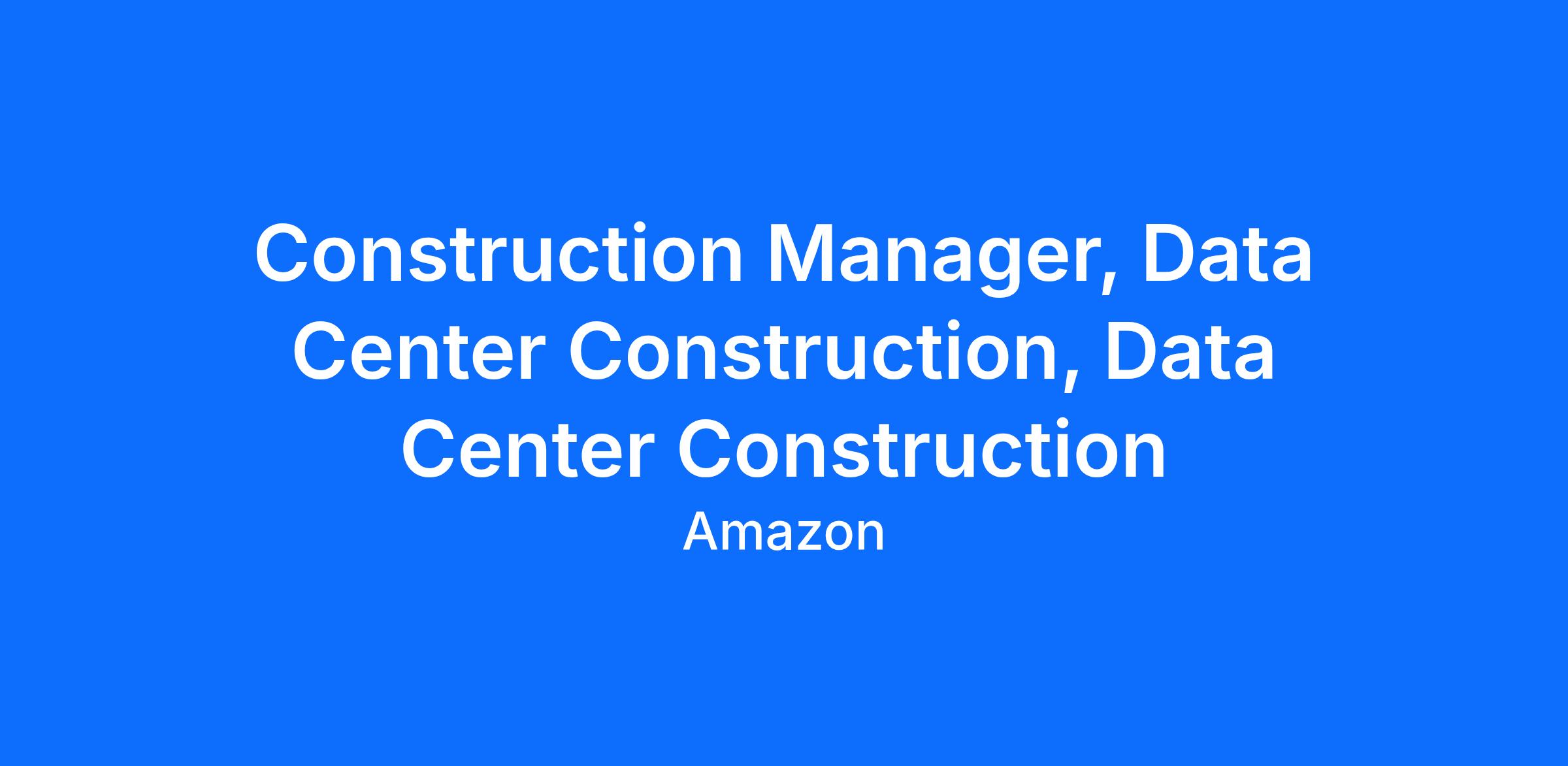 As our Data Center Construction Manager, you will build some of the most interesting electrical and mechanical systems in the world. You will be on the construction site daily interacting with the construction trades, as Amazon’s owner’s representative and be directly responsible for driving cost, schedule, and quality while managing construction vendors and contractors building data centers.