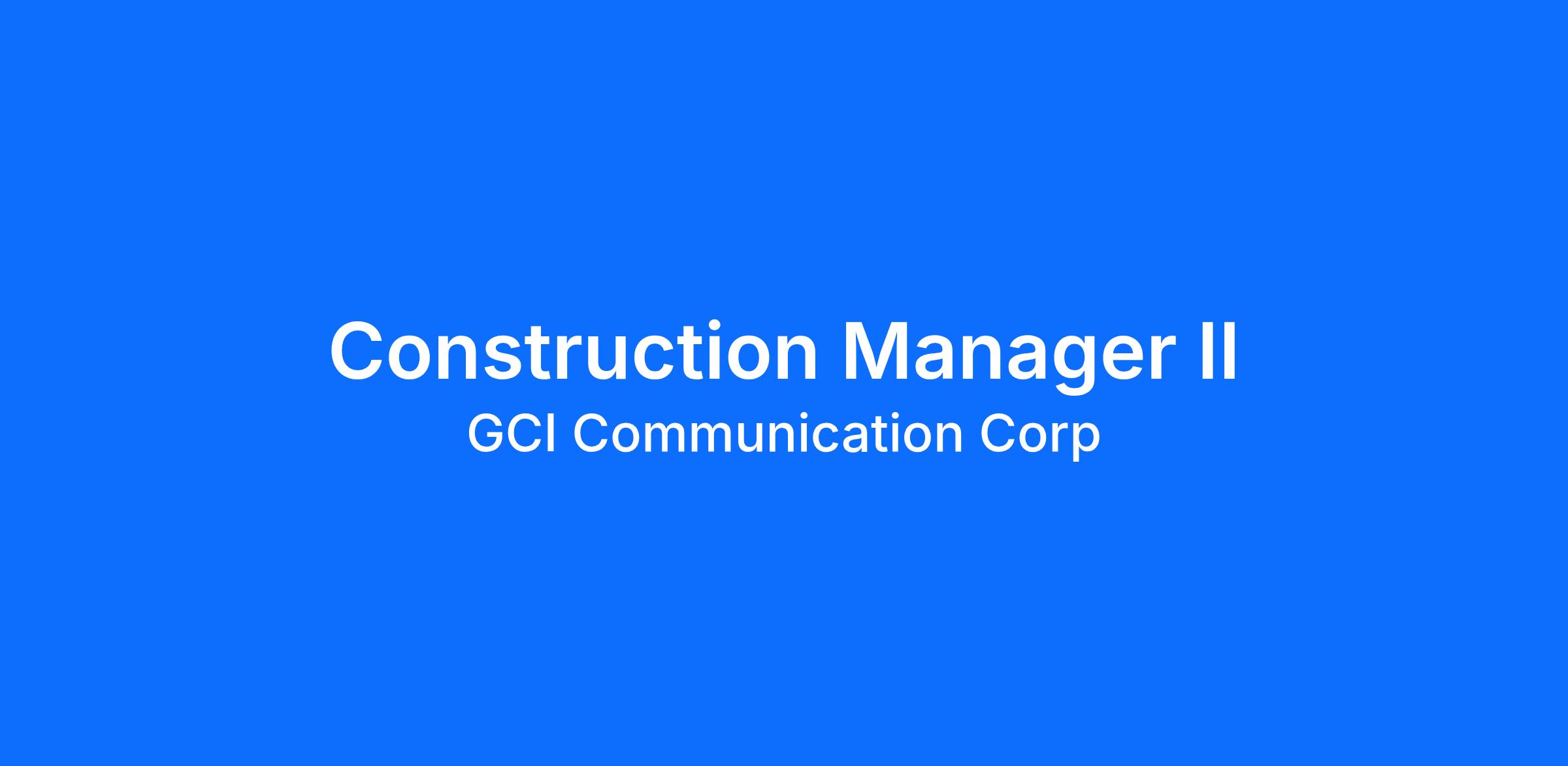 GCI's Construction Manager II is responsible for leading multiple concurrent projects from conceptual development through final construction following project management methodology. Supports the Construction and Implementation team within the Technology Solutions department and the company’s internal and external customers and business units. Manages a wide variety of projects, ensuring projects are completed on schedule and within budget. Required to coordinate materials, equipment, teams, and manage contractors. |