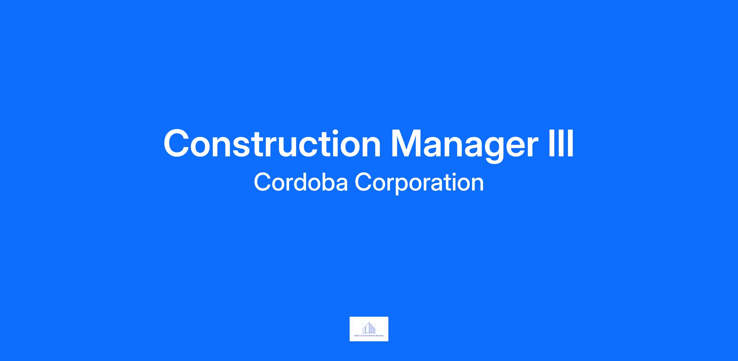 Cordoba Corporation is a leading engineering and design firm based in California. We are seeking a Construction Manager III to support an airport project within the Facilities Sector. The ideal candidate will support construction projects from inception to completion, including planning, budgeting, scheduling, and supervision. Must have at least 10 years of experience and a Bachelor's degree in construction management, engineering or related field.