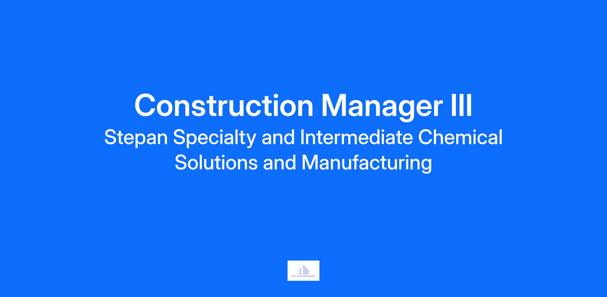 Stepan Company is hiring a Construction Manager III role to join our team at our Millsdale site near Joliet, IL. The Construction Manager is responsible for ensuring the safe, timely, and cost-effective execution of Stepan’s capital projects typically between $1M and $10M. Key responsibilities of the role include organizing, and managing the scope of work, ensuring compliance with Stepan’s EHS&S policies, evaluating and challenging change orders, developing logistics and execution plans, and ensuring constructability through early participation in project development. Construction Manager promotes open communication among internal and external stakeholders, champions safe work practices, and maintains a strong field presence during project execution. A broad technical knowledge on electrical, instrumentation, motors, rotating equipment, fixed equipment and civil – structural. The Construction Manager reports to the Capital Construction Leader and through the assigned project manager.