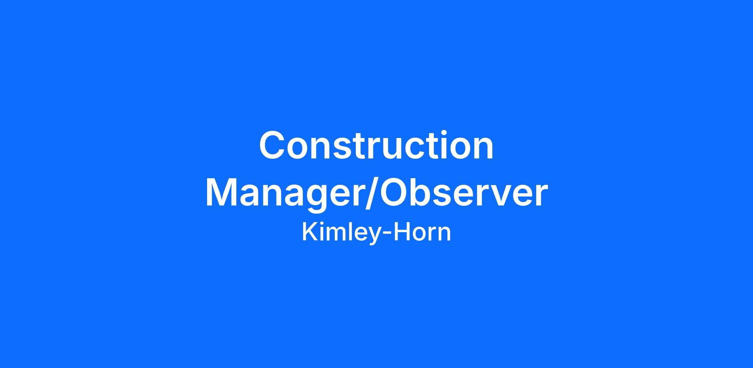 Kimley-Horn's Oklahoma City, Oklahoma (OK) office is looking for a Construction Manager/Observer to join our team and provide construction related services for civil engineering projects during design, bidding and construction phases. The ideal candidate will have 2+ years of heavy-civil construction experience. This is not a remote position.