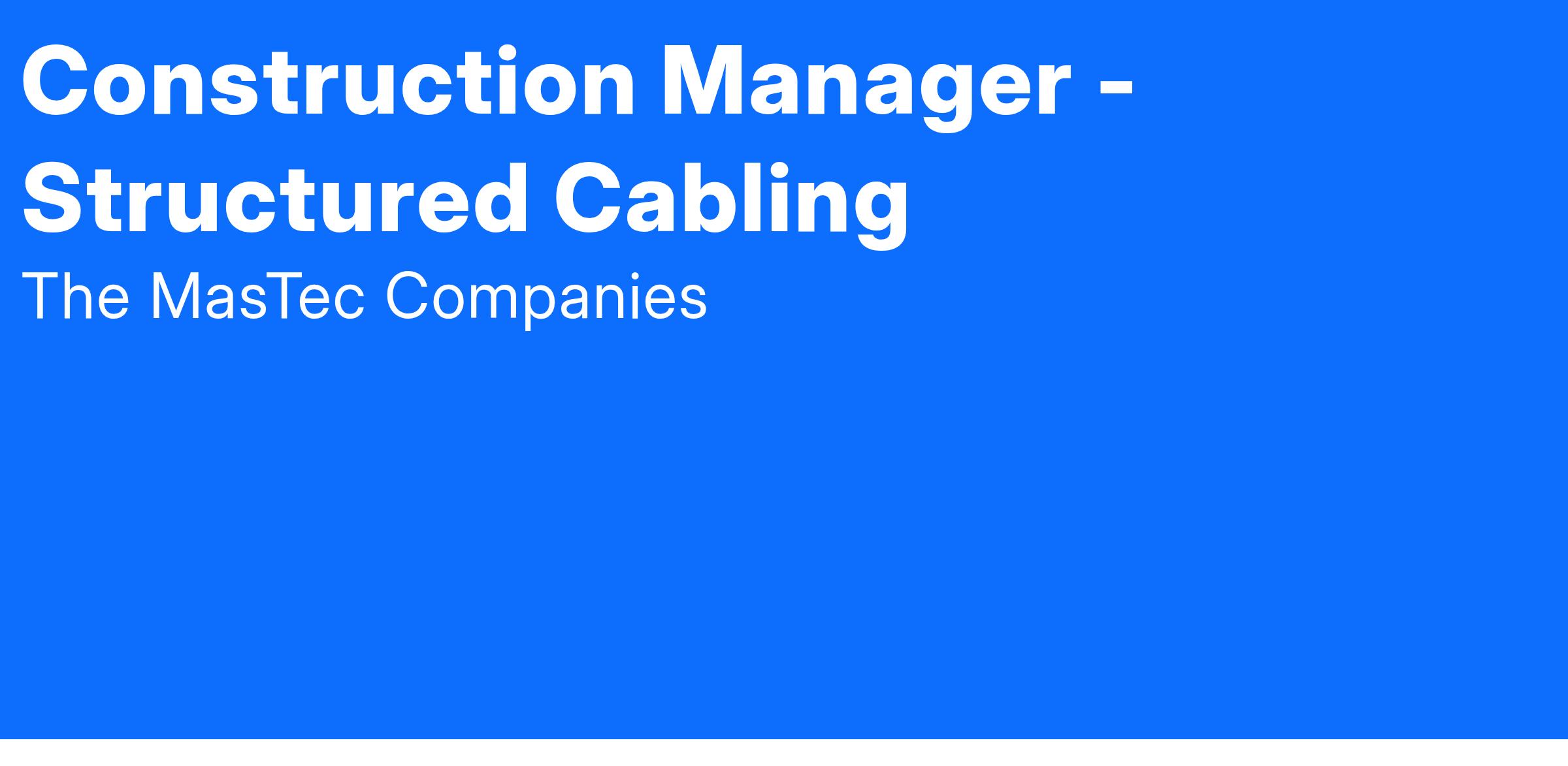 The Construction Manager is the on-site point of contact representing H&M reporting to the Project Manager. This position is responsible for the management of cabling infrastructure activities according to contract, scope, and schedule, supporting the Project Manager in obtaining the best possible financial result of the project. This position is responsible for ensuring that specific goals and plans are prioritized, organized, and accomplished by field crews.