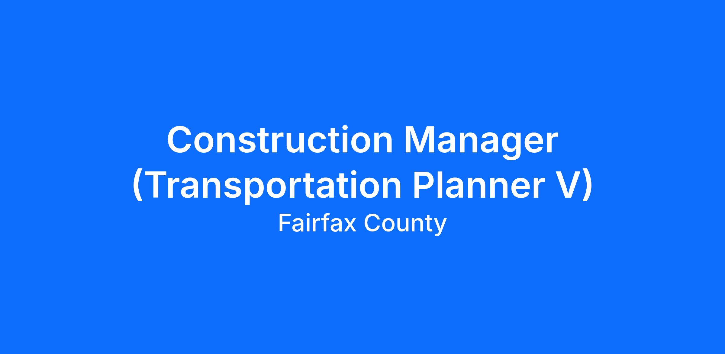 This role oversees construction management and administrative staff supporting the project; coordinates quality assurance and quality control efforts; leads interagency coordination; resolves construction and field issues; supports risk management and claims avoidance; and serves as the County’s primary point of contact among contractors, consultants, partner agencies, and internal stakeholders. This position offers a challenging and rewarding opportunity for an individual committed to advancing Fairfax County’s ambitious transportation goals.