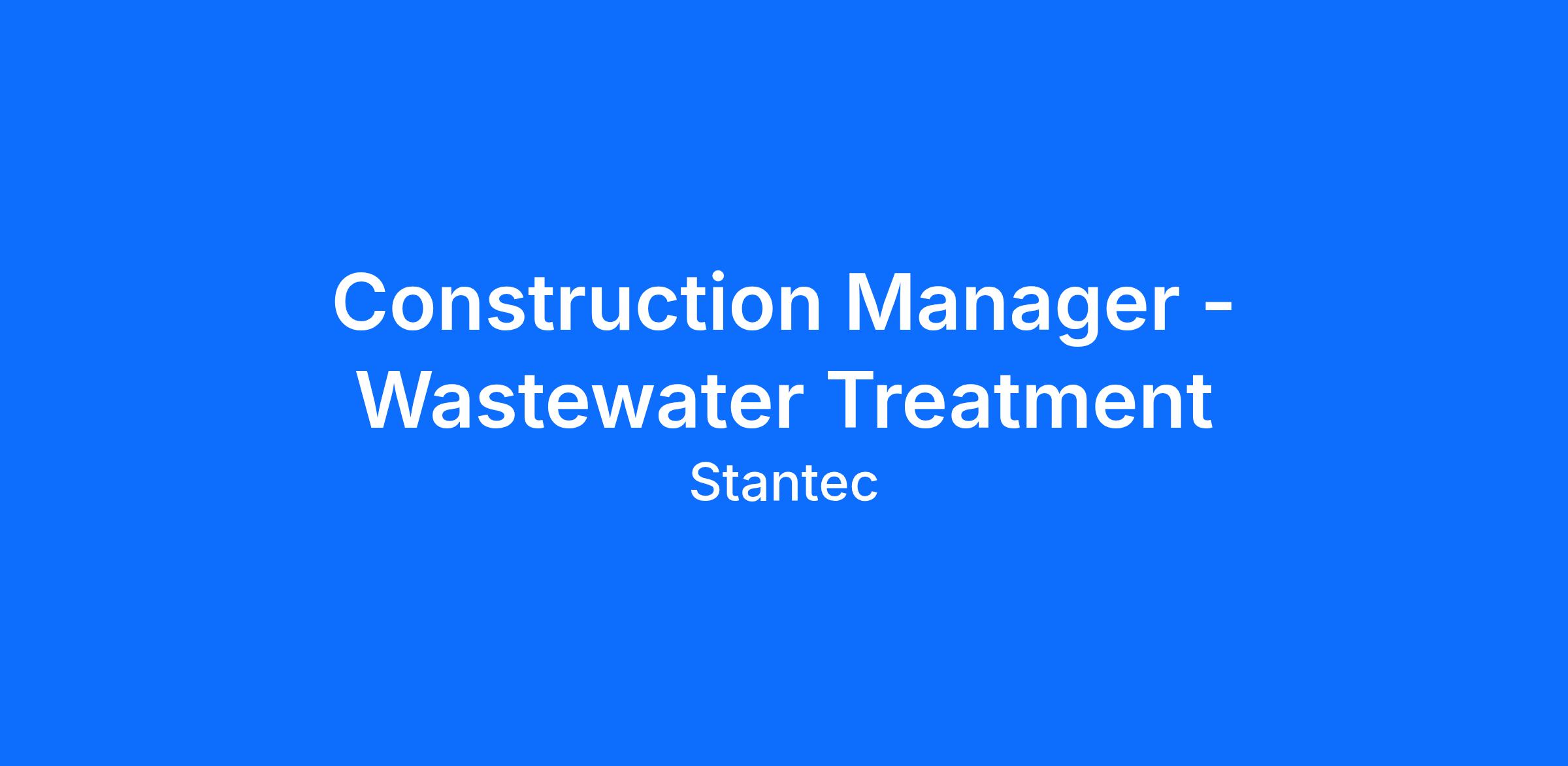 We are looking for a talented Water and Wastewater Construction Manager focused on the planning and engineering design of infrastructure projects who wants to be part of a purpose-driven organization that’s focused on helping our clients, colleagues and communities thrive. You will primarily be working on waste and/or wastewater-related projects through collaboration with a wide range of technical disciplines. Our people are Stantec’s most valuable resource, and in joining our team you will be able to leverage your career experiences and expertise within a culture that values inclusion, celebrates shared success, and applauds ambition.