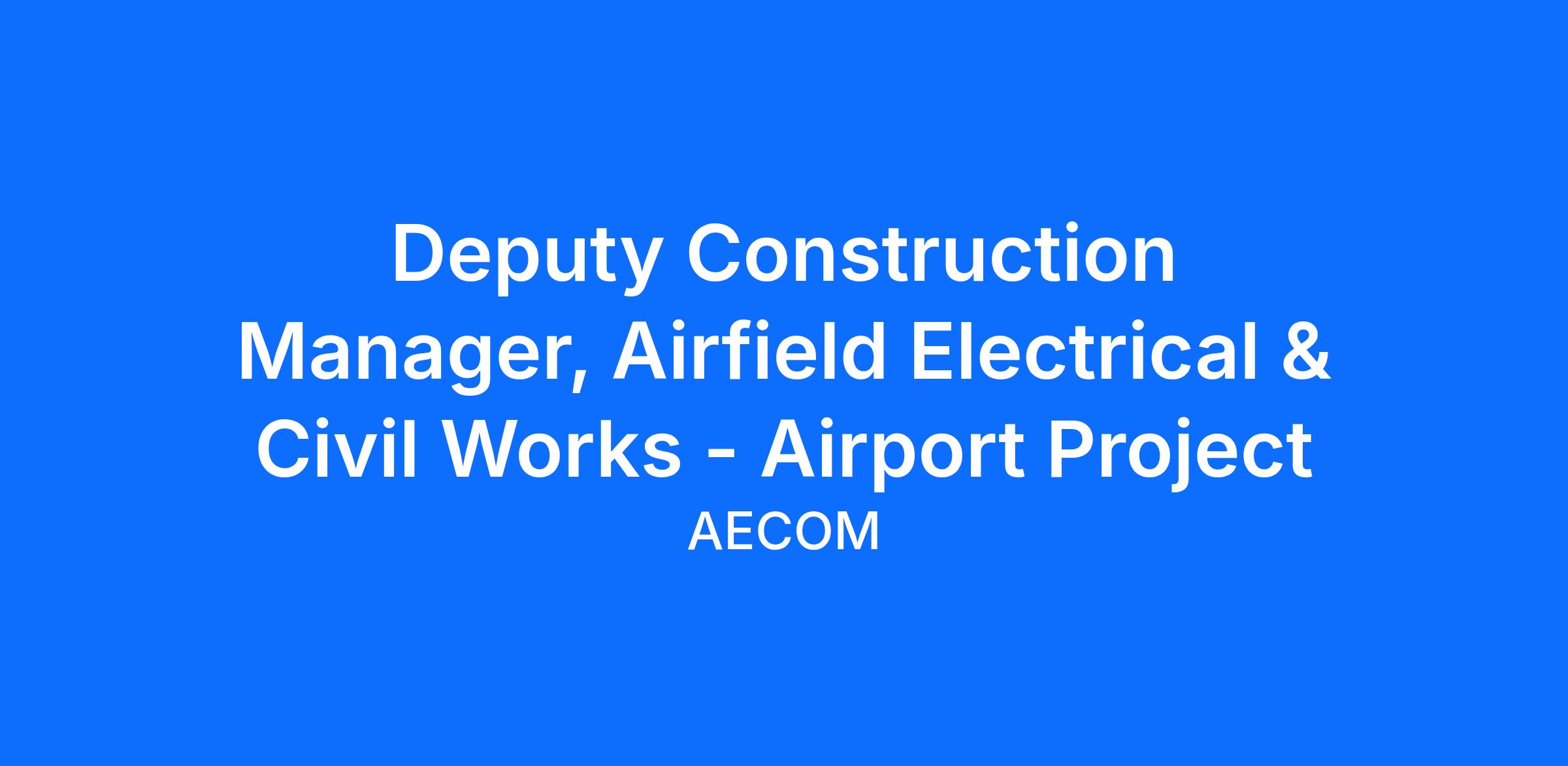 AECOM is seeking a Deputy Construction Manager, Airfield Electrical & Civil Works - Airport Project to join our team. This position is based on-site, out of Mississauga. We are seeking professionals to join our team to help us build one of the most advanced, sustainable and passenger-friendly airports in the world. This is a replacement position.
