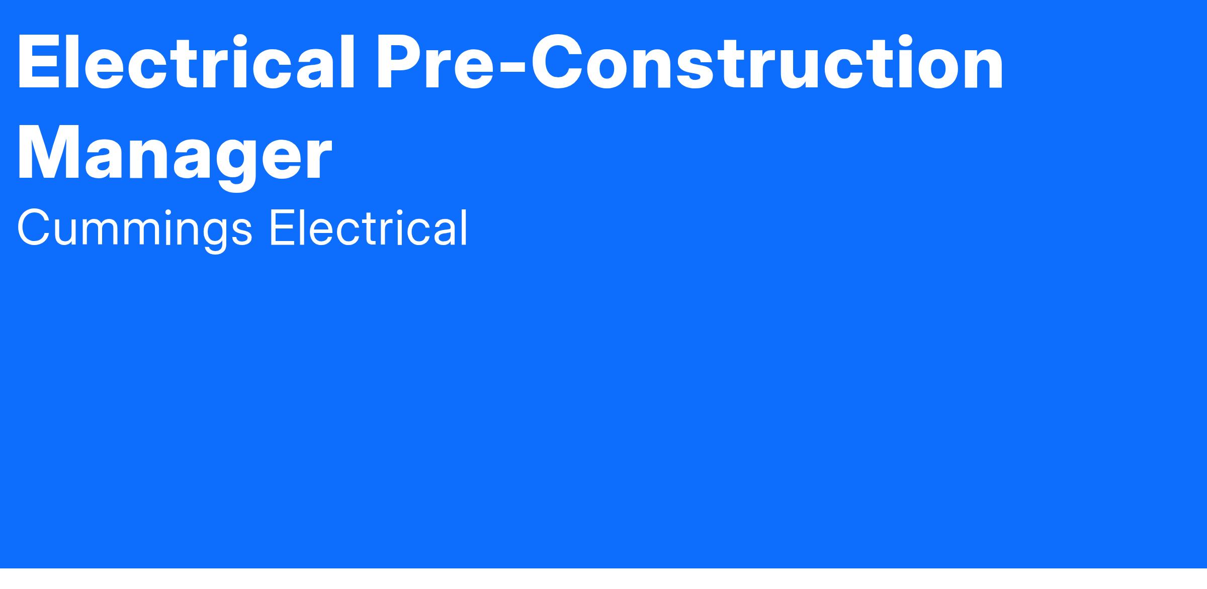 Cummings Electrical, a leading provider of electrical contracting services in DFW, is growing! We are currently looking for an ELECTRICAL PRE-CONSTRUCTION MANAGER to join our Estimating and Business Development team. Come see why people are choosing Cummings over other companies!