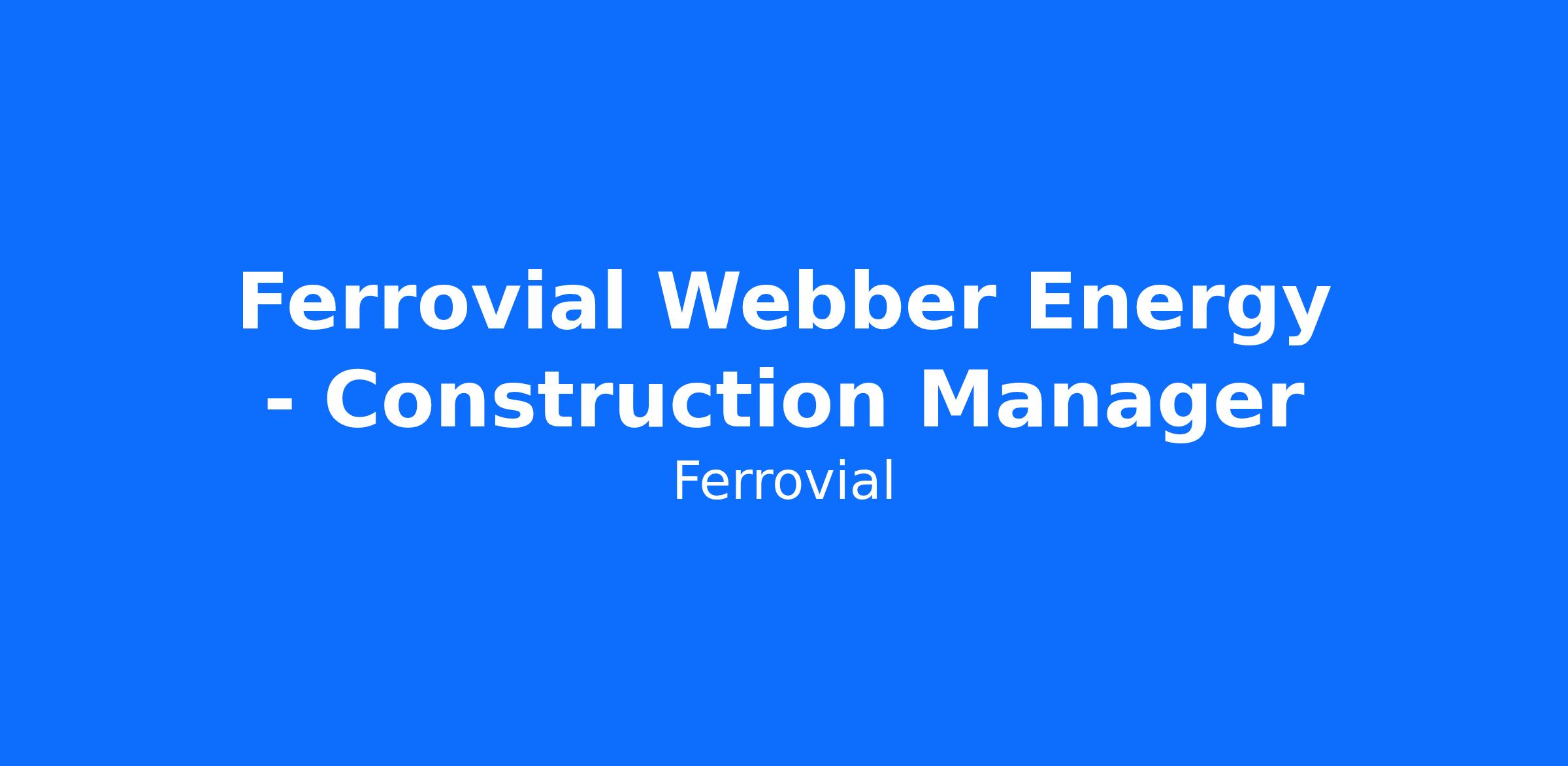 Ferrovial Webber Energy is a joint venture between Ferrovial Energy Solutions and Webber, dedicated to promoting the transition toward a sustainable, clean, and cutting-edge economy. As a full Engineering, Procurement, and Construction (EPC) company, we focus on delivering turnkey solutions for renewable energy projects. Our expertise spans the construction of photovoltaic (PV) plants, Battery Energy Storage Systems (BESS), and wind projects.