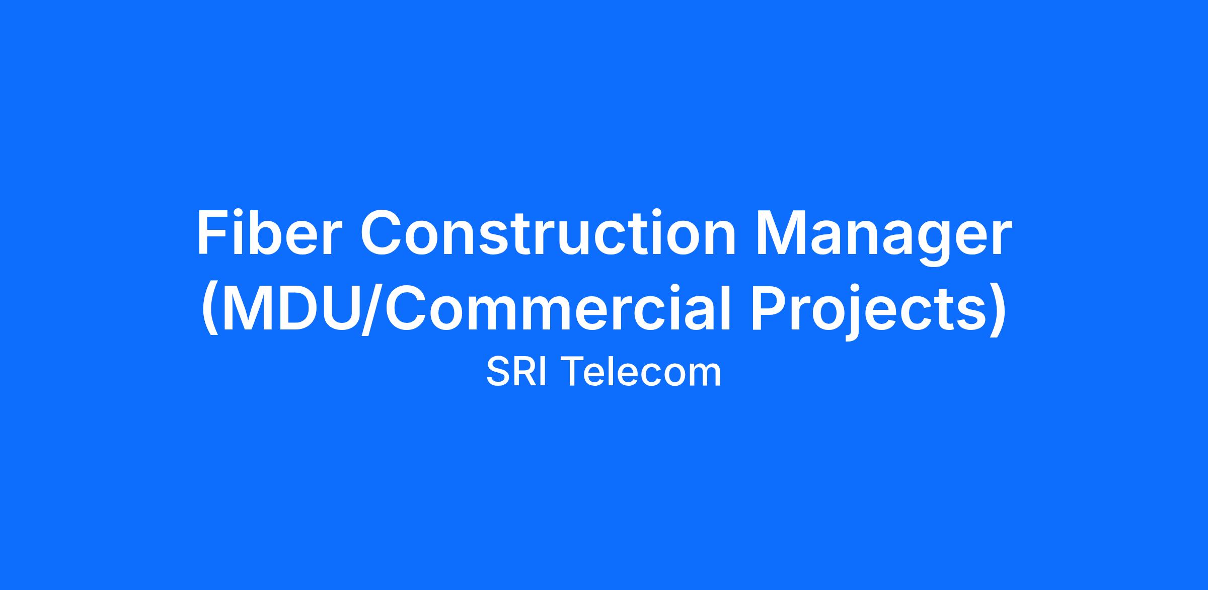 SRI Telecom is seeking a Fiber Construction Manager with MDU (multi-dwelling unit) and FTTH experience to support large-scale fiber deployment projects. The successful candidate will oversee all activities from field design, permit verification, reporting, restoration and close out of the MxU project. The Construction Manager must be highly detailed, communicative, collaborative, task driven, comfortable working with the computer, self-motivated and comfortable speaking up on project calls.