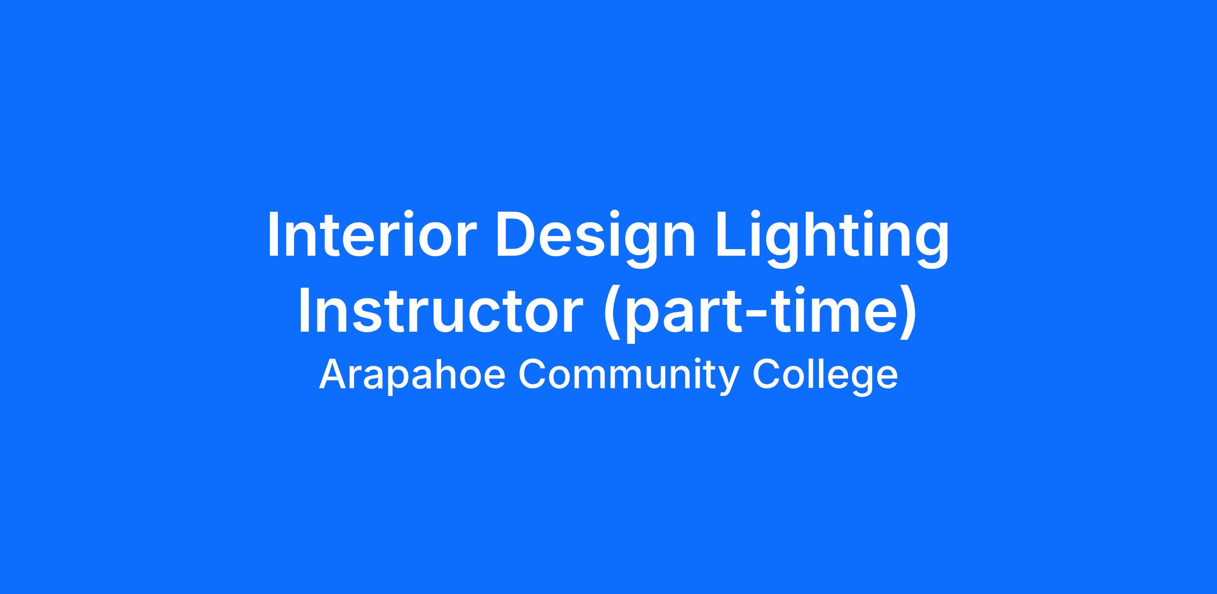 The Art & Design Department at Arapahoe Community College is accepting applications for a part-time Instructor to teach in the Interior Design Program during the upcoming Fall 2026 semester.