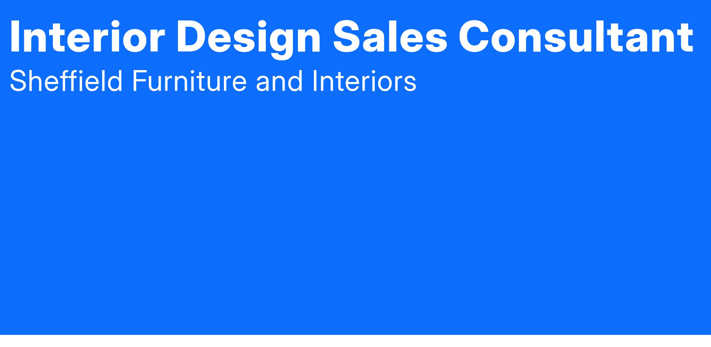 Sheffield Furniture and Interiors, a four-generation family business, is looking for a passionate and sales-oriented interior designers to join our team. Our designers love their job and that is why they go the extra mile to help their clients create the beautiful home they've always wanted. This will involve making in-home visits and design presentations including floorplans, sketches, coordinating fabrics, paint colors, and floor covering selections. Designers are also expected to close sales, register prospects, and be active on social media. Do you thrive in an environment of collaboration, entrepreneurship, and excellence? Do you understand how to make the customer the hero in their design experience? If so, we'd love to talk to you.