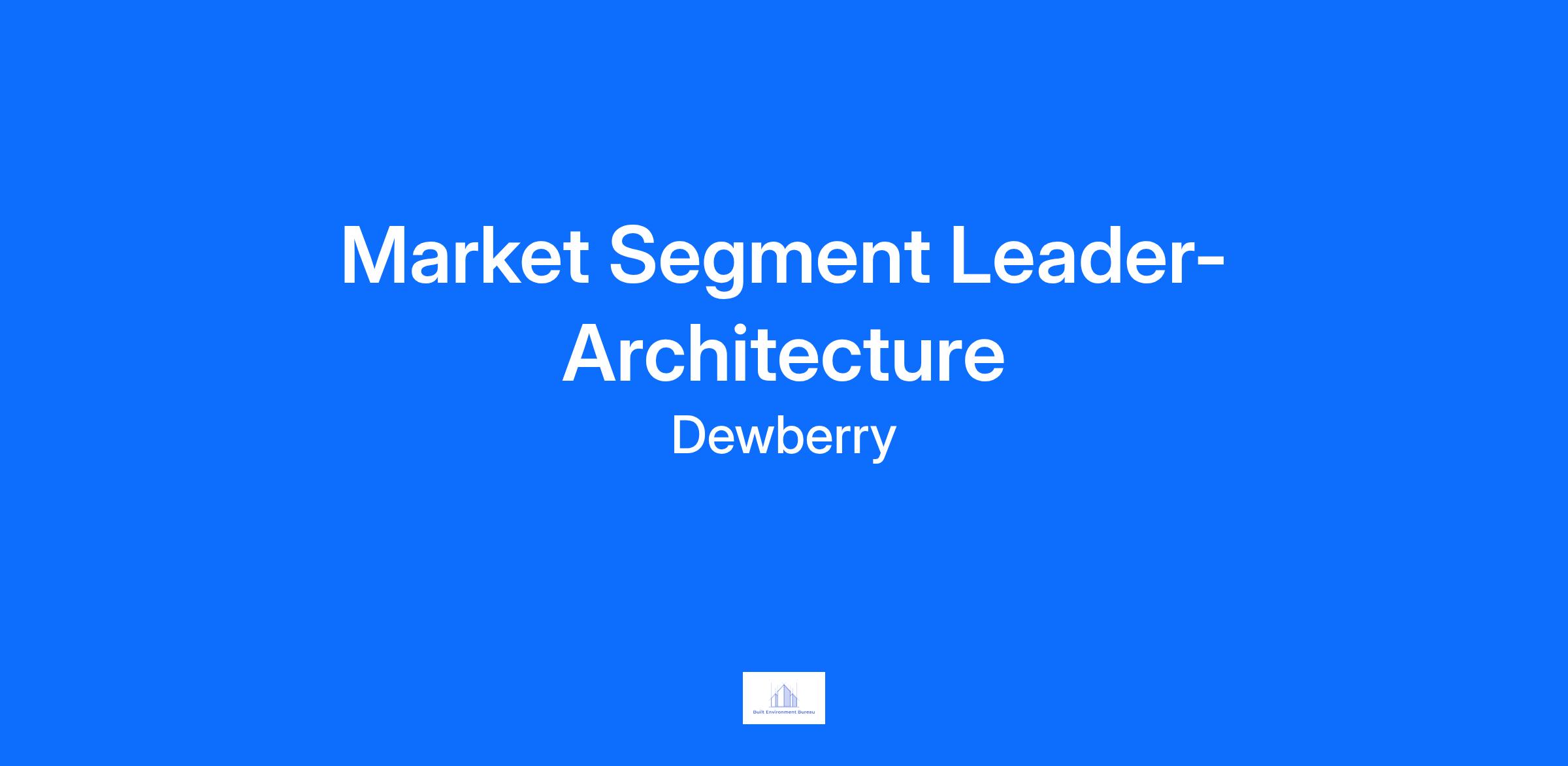 Dewberry Architects Inc. is seeking an energetic Healthcare Architect to join our Tulsa, Oklahoma office as a Market Segment Leader to promote market growth in the region. Candidates should be team-oriented, have strong organizational and communication skills, and have an entrepreneurial mindset.