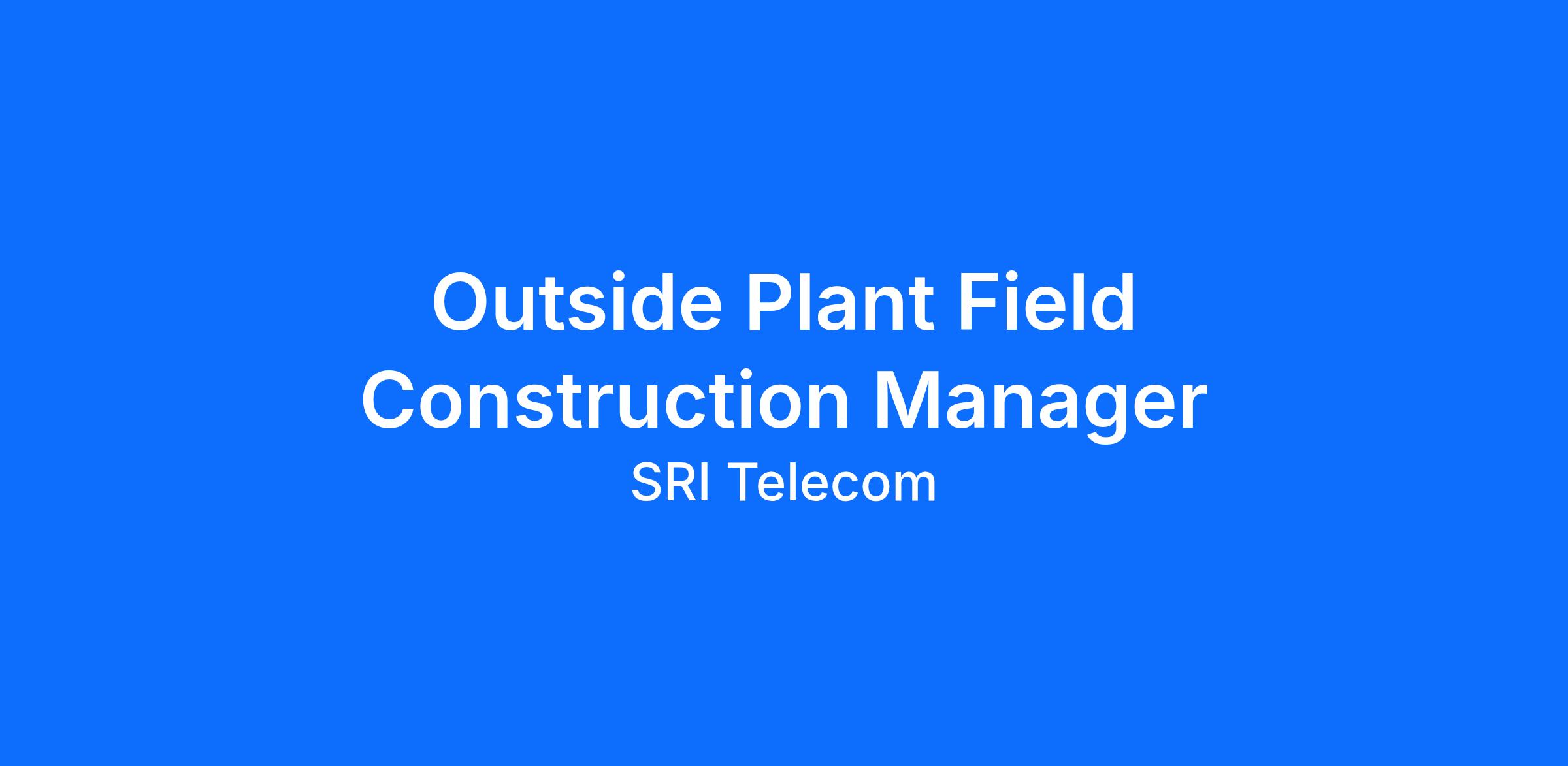 SRI Telecom is seeking an OSP Construction Manager with relevant field project Management experience to contribute to all areas of expertise with various cross functional project teams. The successful candidate will oversee all activities from field design, permit verification, reporting, restoration and close out of the OSP project. The Construction Manager must be highly detailed, communicative, collaborative, task driven, comfortable working with the computer, self-motivated and comfortable speaking up on project calls.