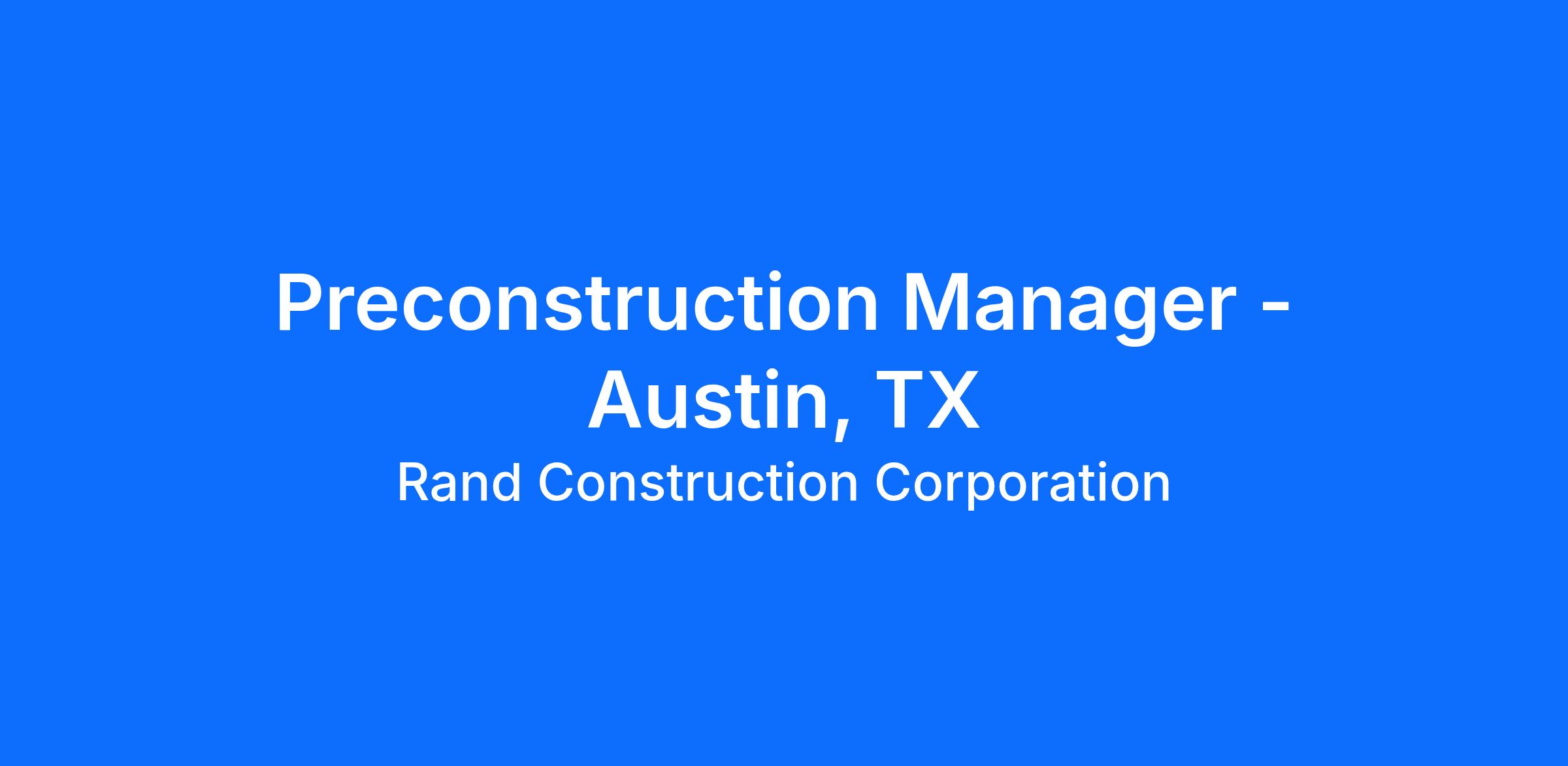 If working for a team of dynamic professionals that create award winning projects for some of the world’s most successful companies sounds exciting, rand* construction corporation is where you want to be. One of Austin's best places to work, rand* provides a culture of excellence that offers unlimited growth. We are seeking an experienced, dynamic Preconstruction Manager looking for a company where they can expand our reach of extraordinary client service.