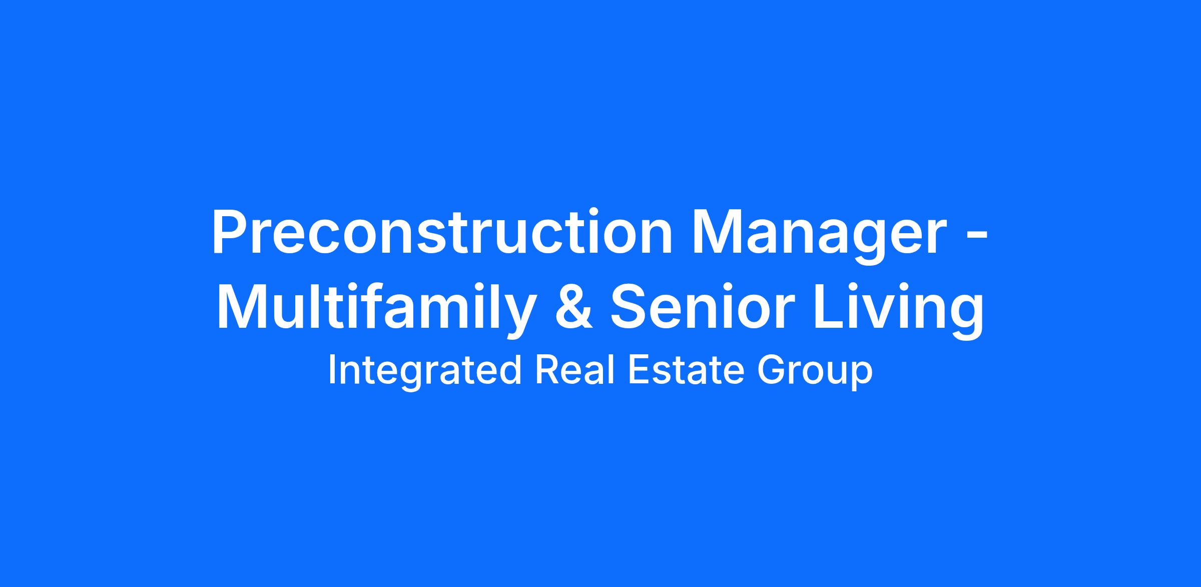 Integrated Real Estate Group (IREG) is seeking a Preconstruction Manager to support planning and budgeting efforts across multifamily apartments, senior living communities, affordable housing, and memory care projects.