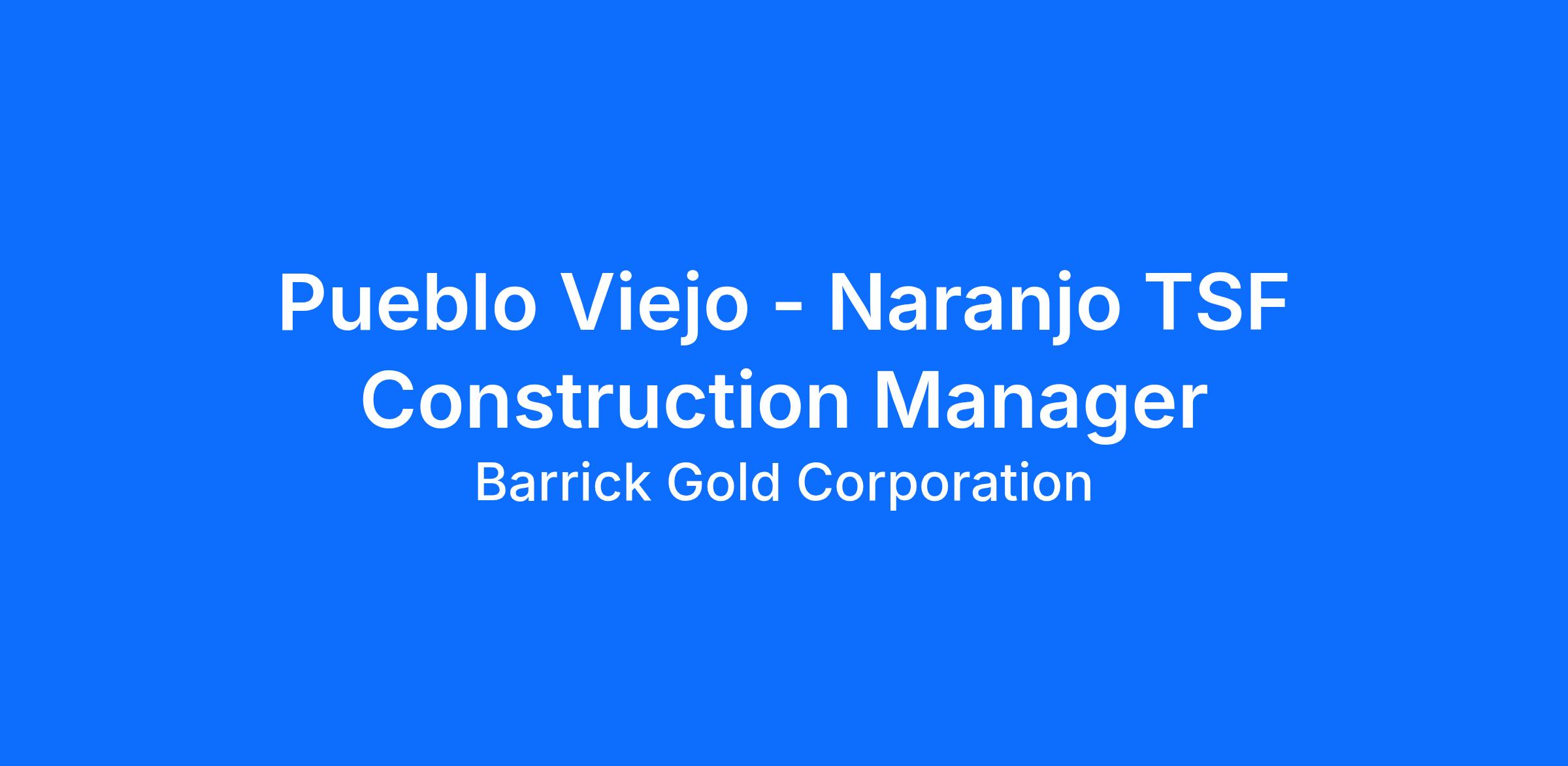 Barrick is looking for a Naranjo TSF Construction Manager to join our Projects team. This Person will be responsible for lead and direct the construction team of the new Naranjo Tailing Storage Facility project (Naranjo TSF) at the Pueblo Viejo Mine to successfully deliver safely, on time, on budget and to the quality standards required. The Naranjo Dam will be among the top ten highest (and in one of the highest seismic hazard areas) in the world and will require use of proven industry techniques, best practices and standards, established from past international experiences. To be successful, the role must oversee and manage all construction aspects of the Naranjo TSF, while providing mentorship and guidance to national and international team members including supervision, survey, contractors, quality assurance, engineering and support functions while also working alongside project and site management on a regular basis to report and integrate into the Pueblo Site