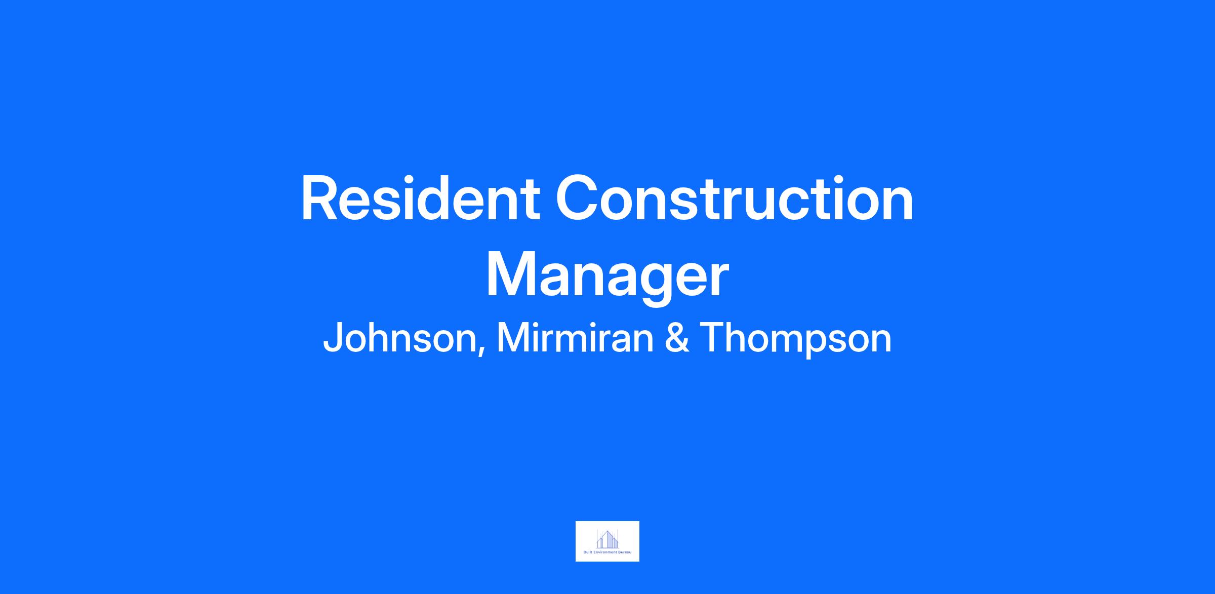 At JMT, we believe our work adds value to our community. Our culture is shaped by employee ownership and engagement. We are seeking a Resident Construction Manager to be responsible for managing a variety of construction and rehabilitation projects with the Allegheny County Airport Authority located in Pittsburgh. PA.