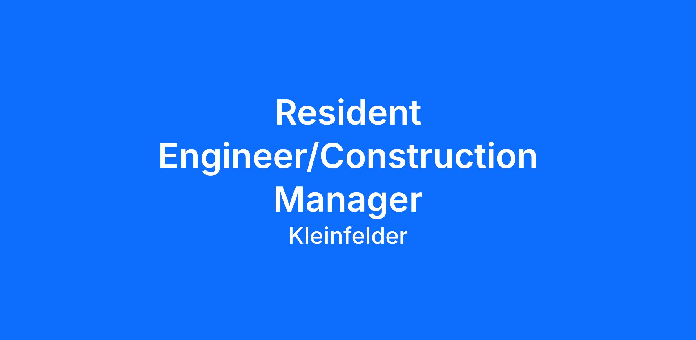 Kleinfelder is hiring a Resident Engineer / Construction Manager for our Augusta, ME, Portland, ME and Manchester, NH offices.