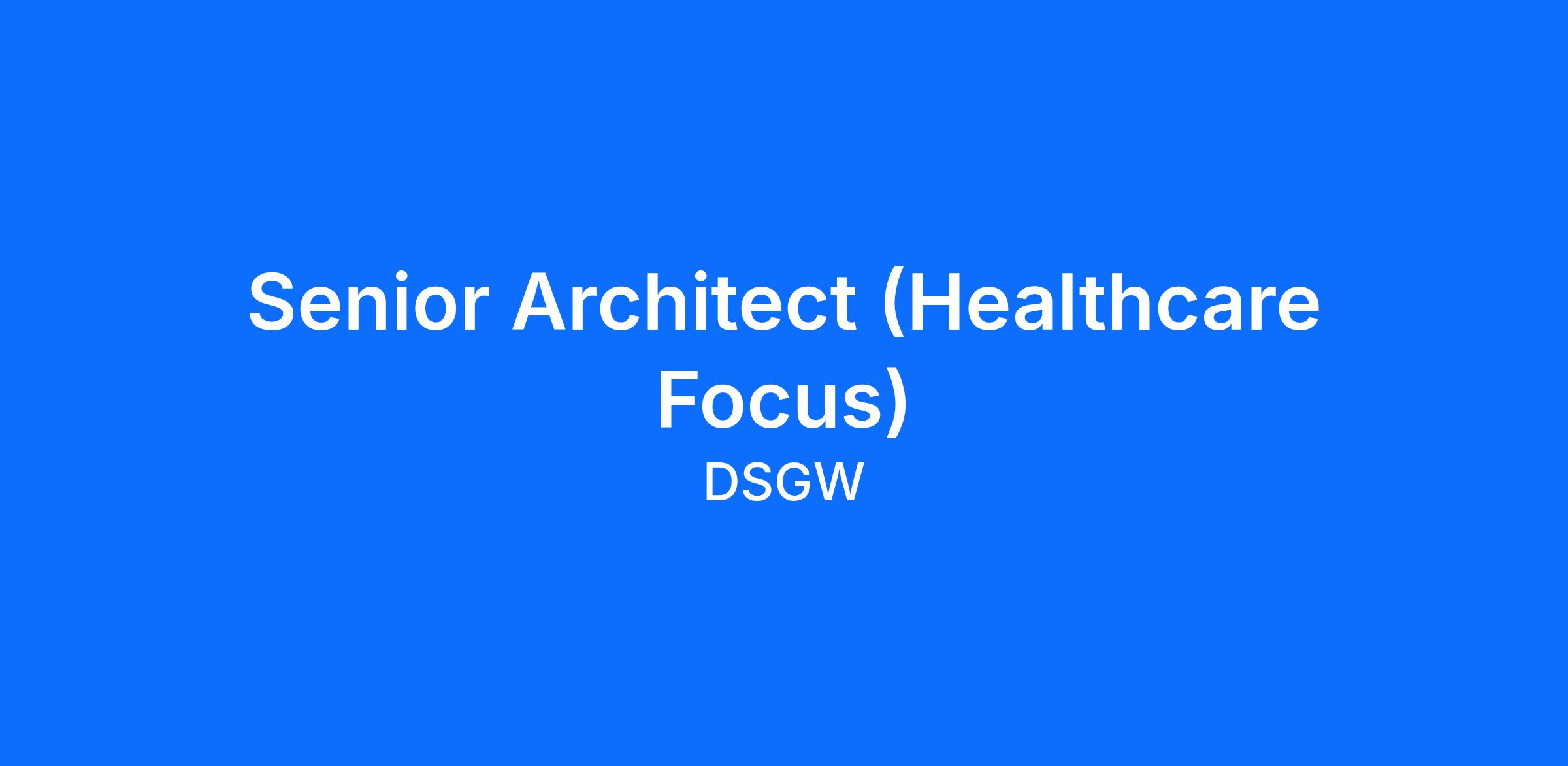 DSGW is recruiting a full-time Senior Architect with healthcare experience to join our dynamic team.