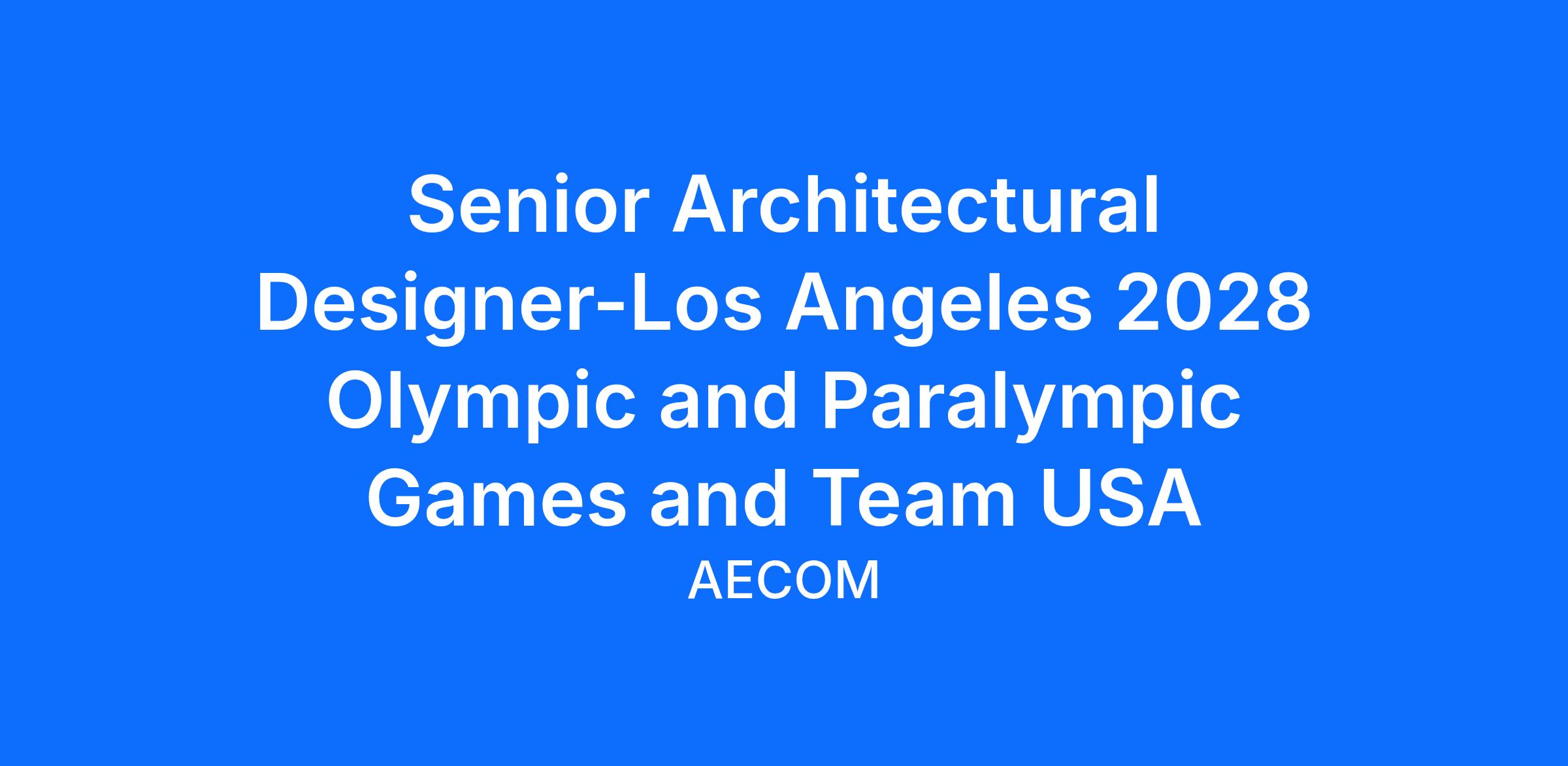 AECOM is actively seeking a highly motivated Senior Architectural Designer to join our Los Angeles Architecture studio. This is a pivotal role to work on one of the most exciting, large and complex local projects: Los Angeles 2028 Olympic and Paralympic Games and Team USA!