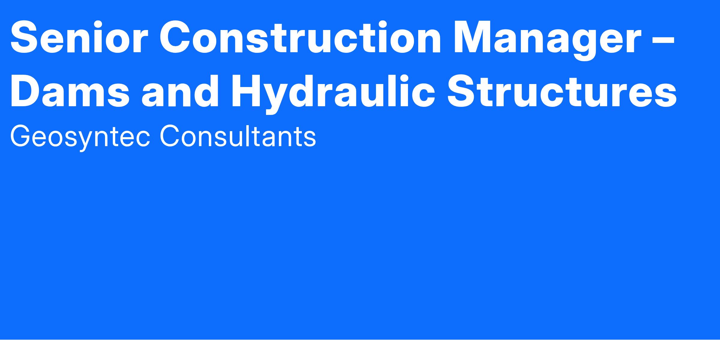 Geosyntec is seeking a Senior Construction Manager – Dams and Hydraulic Structures to support our growing Dams & Levees practice preferably in Johnson City or Chattanooga, TN offices. Locations in Nashville, TN, Huntington, WV, or Charlotte, NC are also options. This position will be an integral part of our team, and will plan, direct, and coordinate a wide variety of environmental and construction projects including the construction and modifications of dams, levees, and hydraulic structures. This role is expected to supervise and coordinate the construction process from the conceptual development stage through final construction with special focus on quality assurance, and customer service in large multi-phase construction projects.