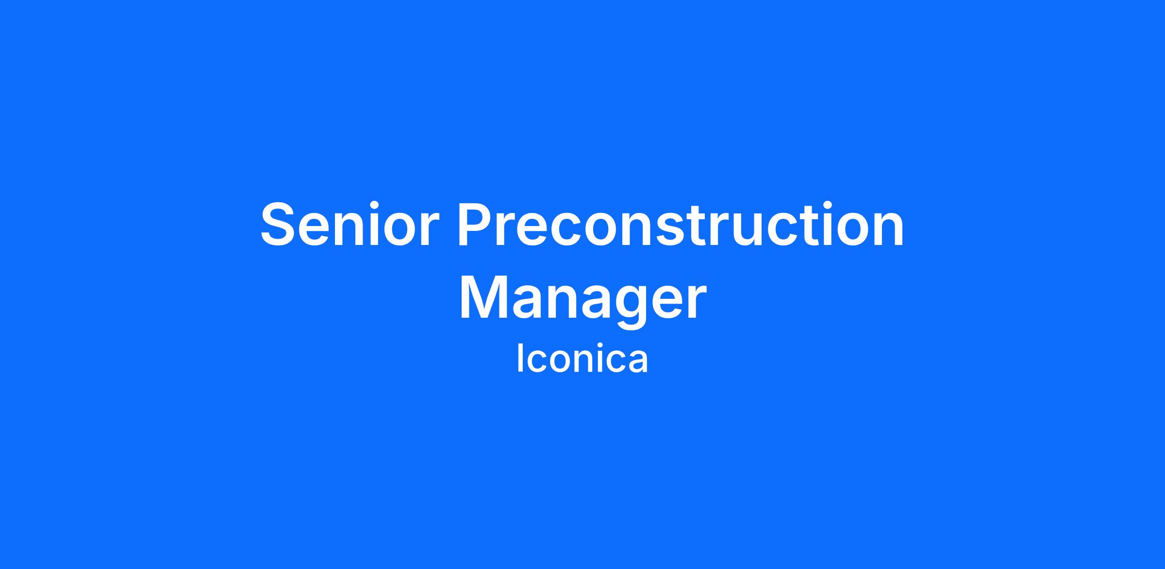 Now Hiring: Senior Preconstruction Manager at Iconica