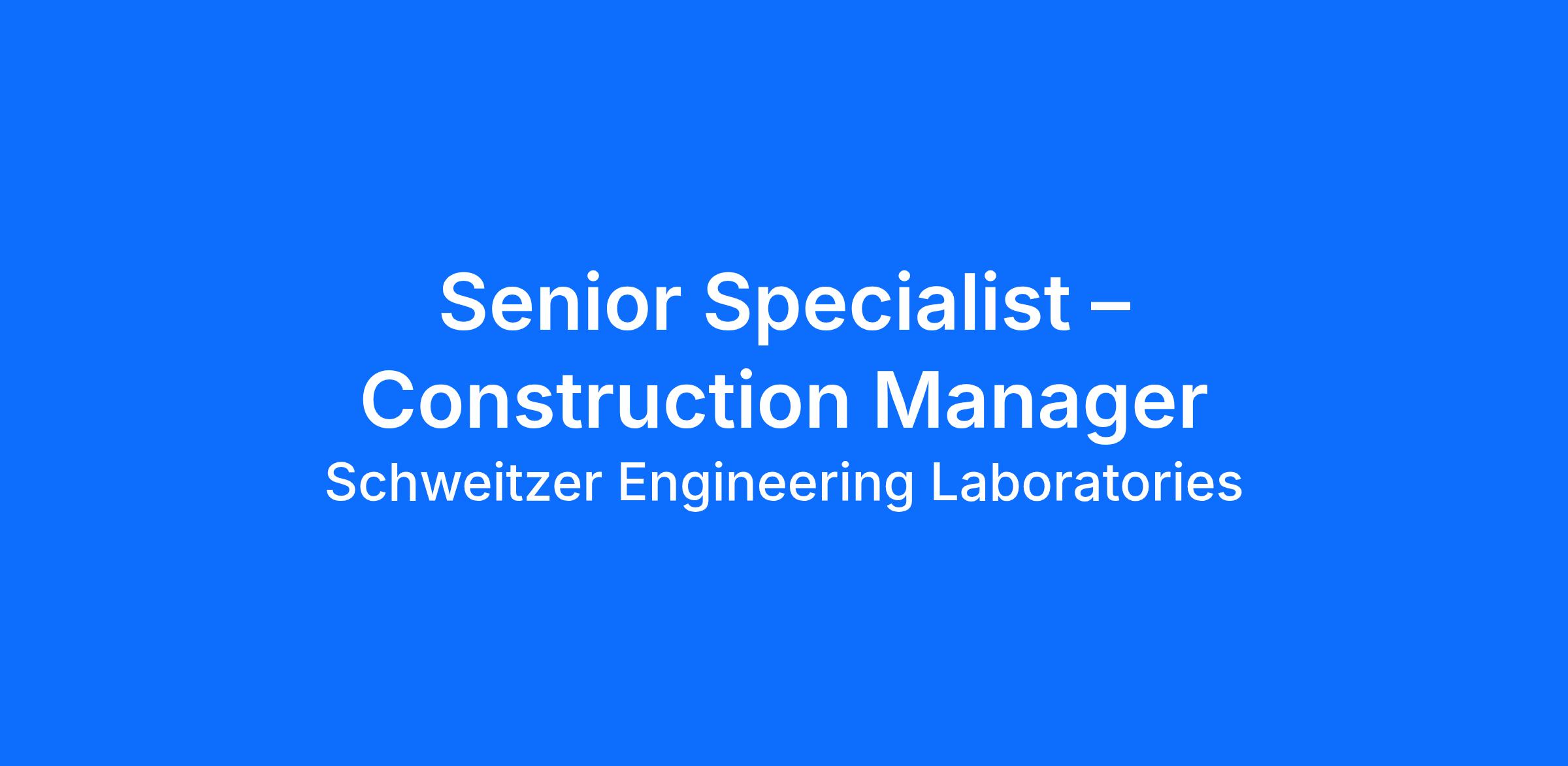 Senior Specialist – Construction Manager