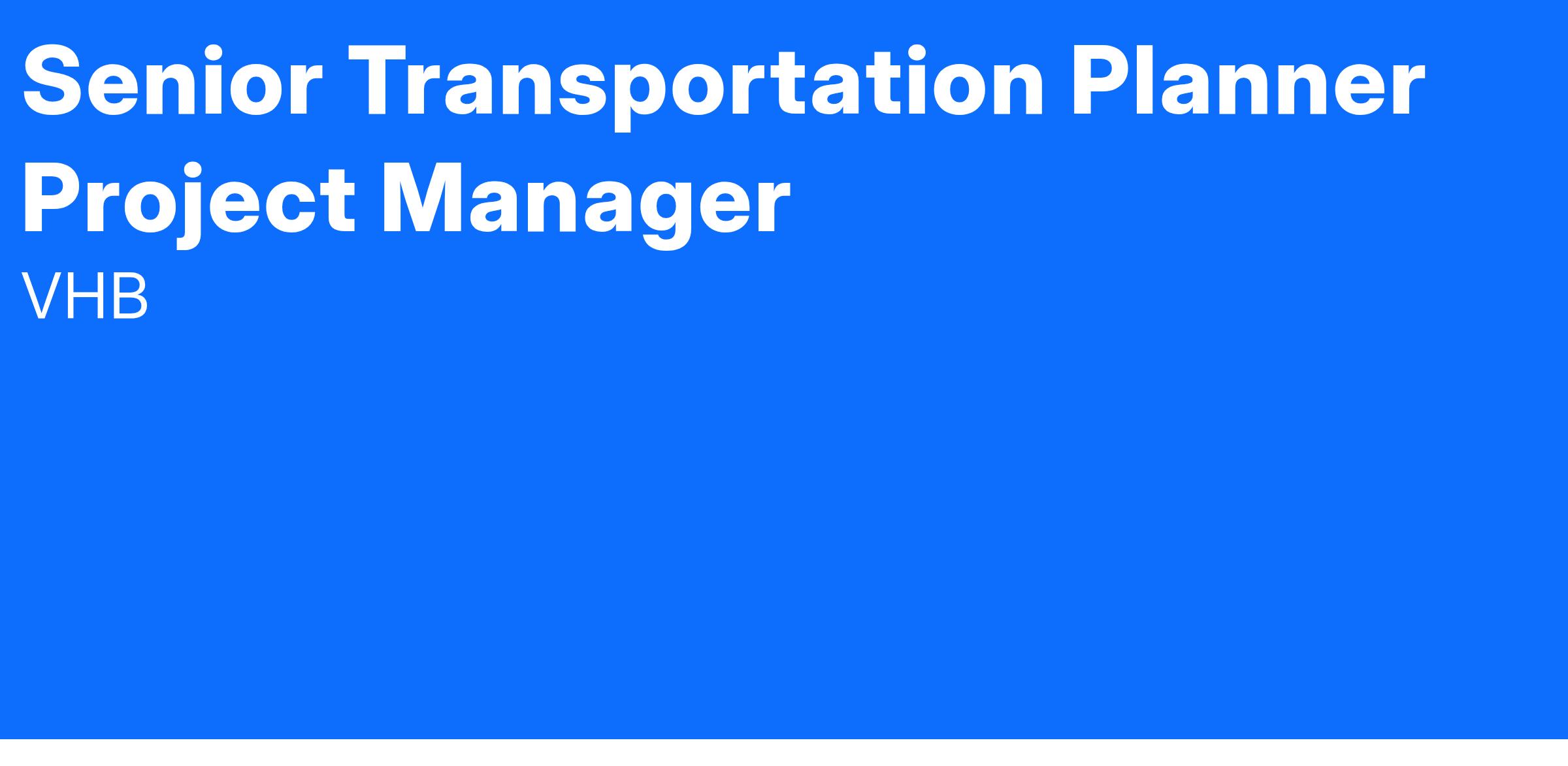 VHB’s Watertown and Boston offices are looking for a Senior Transportation Planner /Project Manager in the Transportation Planning and Operations group to join our growing teams.