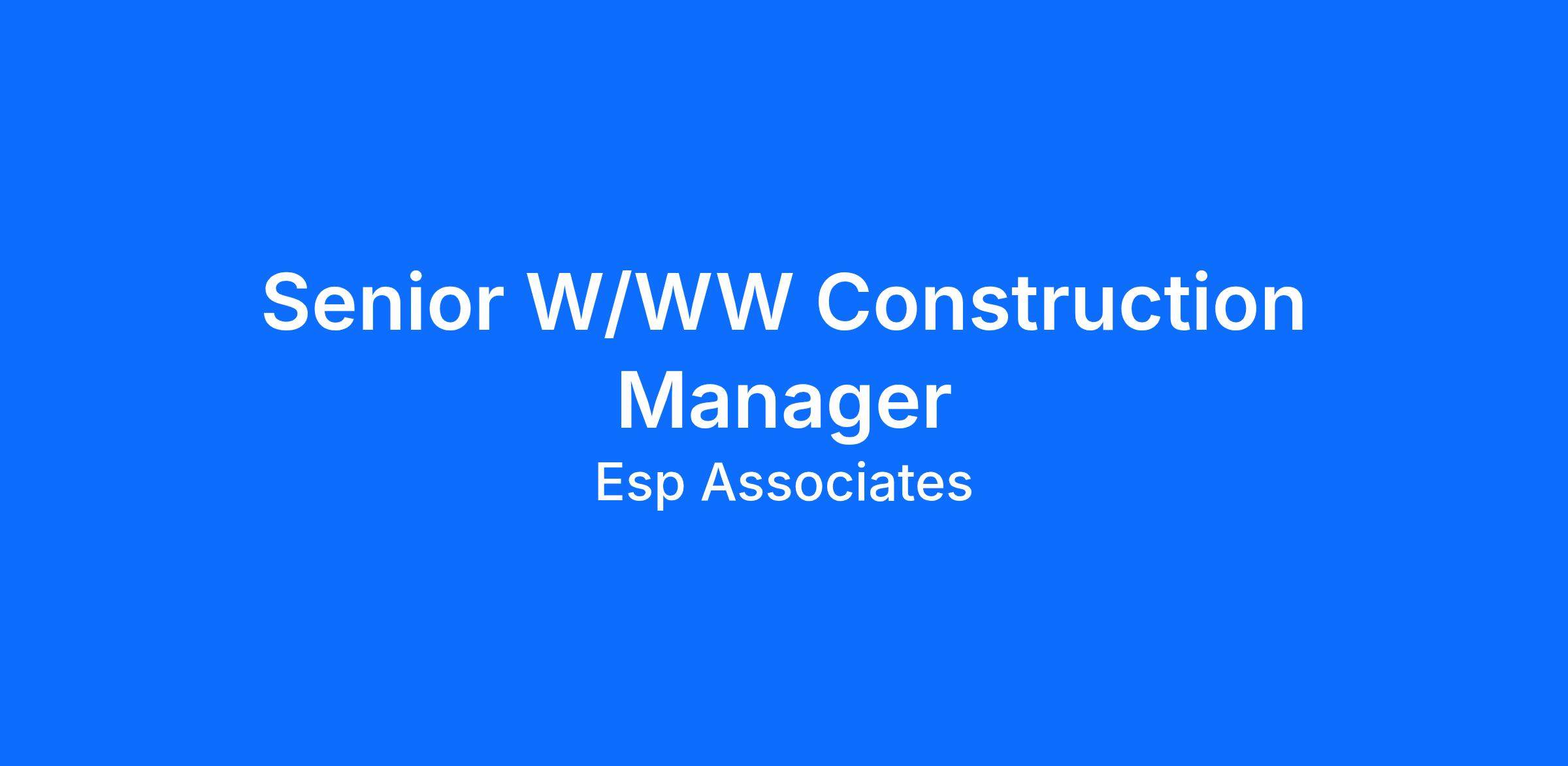 ESP Associates, Inc. is actively looking to bring an experienced Senior Water / Waste Water (W/WW) Construction Manager on to our team for management of construction of large capital infrastructure improvements, including water and wastewater treatment and conveyance, and large diameter pipe projects.