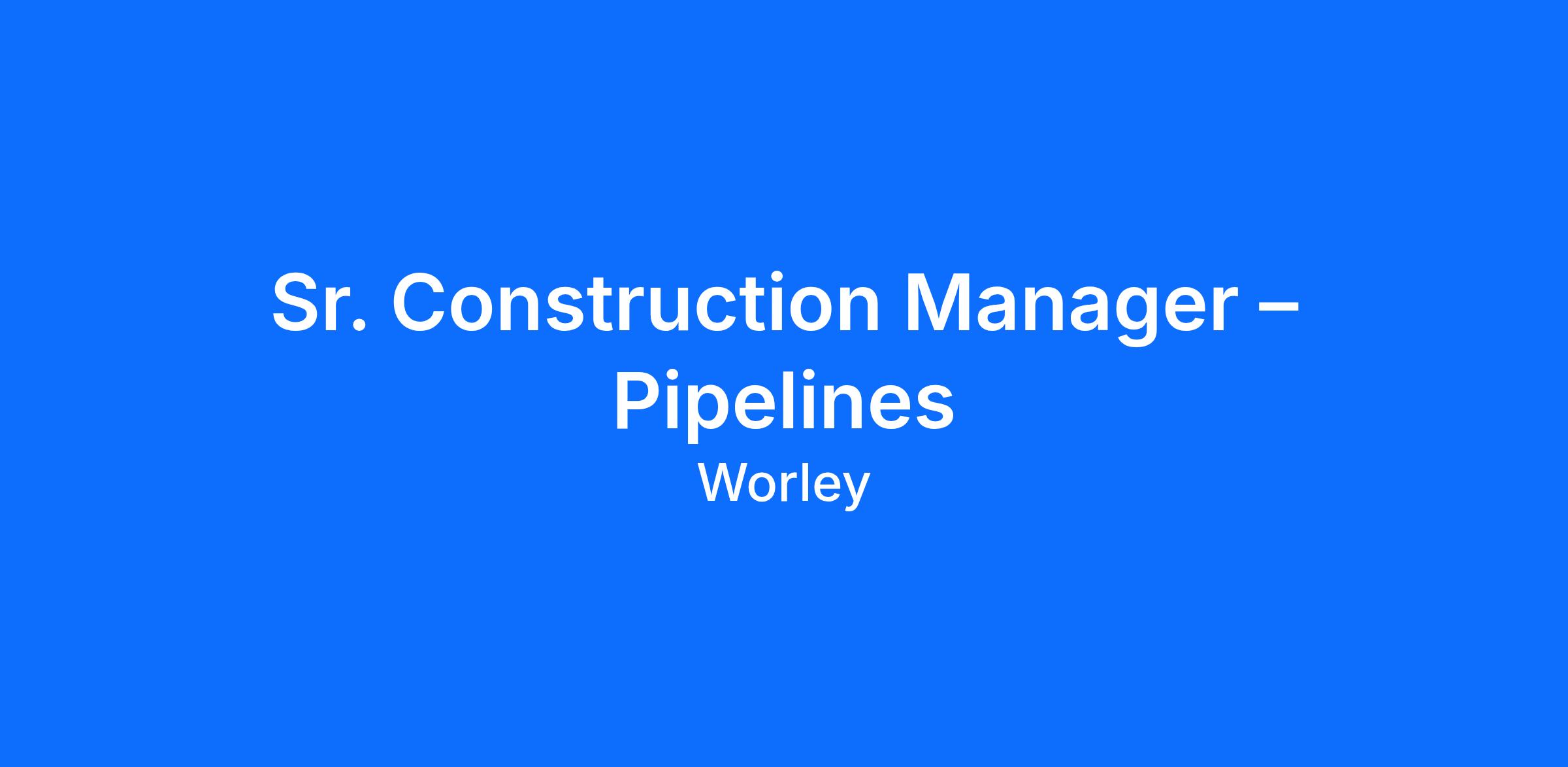 <div><p class="MsoNormal" style="text-align\:center;"><span style="font-family\:Verdana, Geneva, sans-serif;font-size\:12px;"><strong>Sr. Construction Manager – Pipelines</strong></span></p><p class="MsoNormal"><span style="font-family\:Verdana, Geneva, sans-serif;font-size\:12px;"><strong>Building on our past. Ready for the future.</strong></span><br/><span style="font-family\:Verdana, Geneva, sans-serif;font-size\:12px;">Worley is a global professional services company of energy, chemicals and resources experts. We partner with customers to deliver projects and create value over the life of their assets. We’re bridging two worlds, moving towards more sustainable energy sources, while helping to provide the energy, chemicals and resources needed now.</span></p><p class="MsoNormal"><span style="font-family\:Verdana, Geneva, sans-serif;font-size\:12px;">Play an integral role in delivering some of the most complex and high-impact pipeline infrastructure projects in the world. As a Sr....