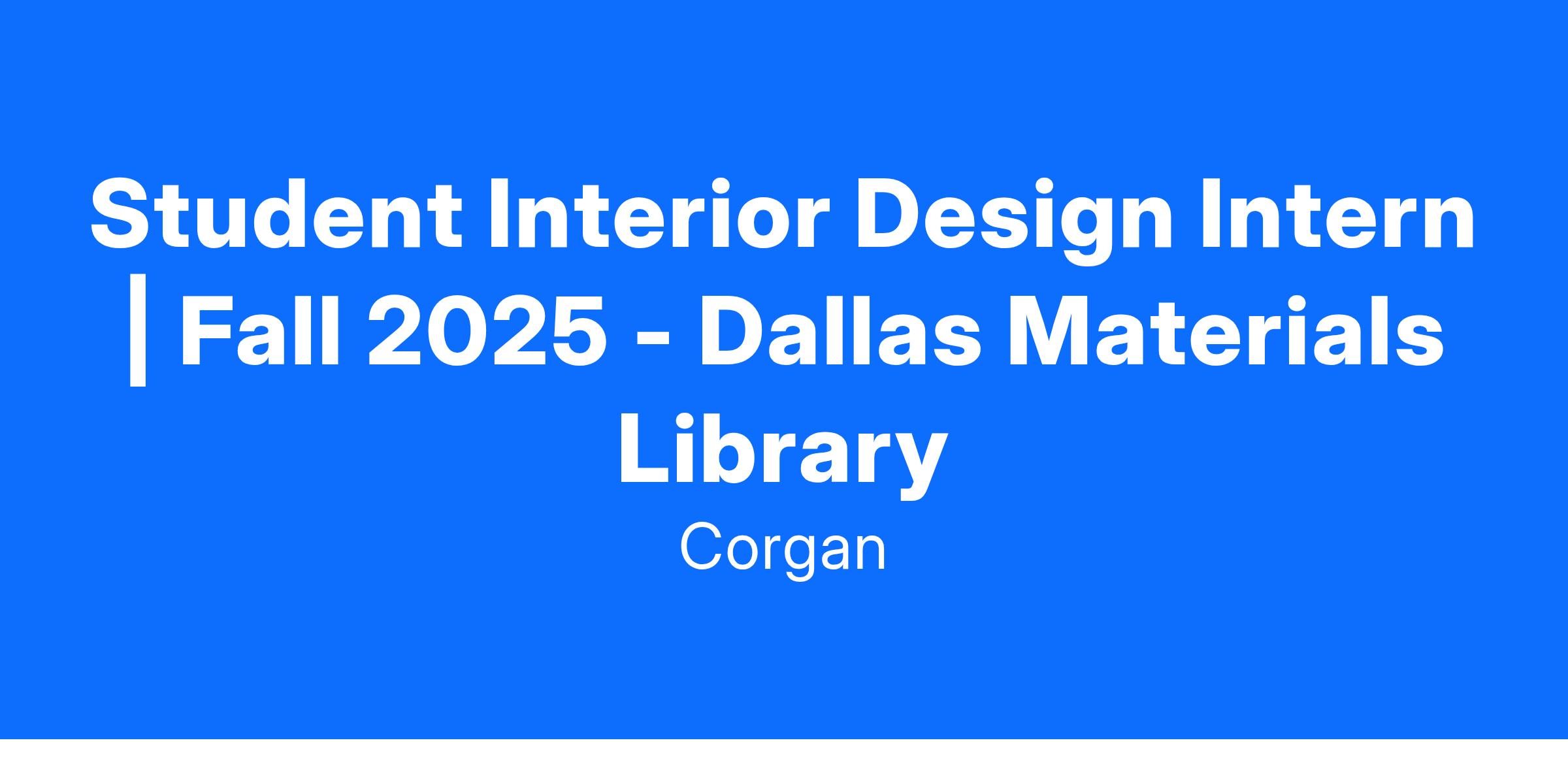 Corgan is actively recruiting dynamic Interior Design students interested in an internship on-site in our Dallas Materials Library for the Fall of 2025. Tackle these responsibilities alongside a team of creative, highly motivated individuals who are passionate about their work and ready to collaborate to achieve outstanding results. Our ideal team member is passionate and progressively seeking more responsibilities to expand their expertise.