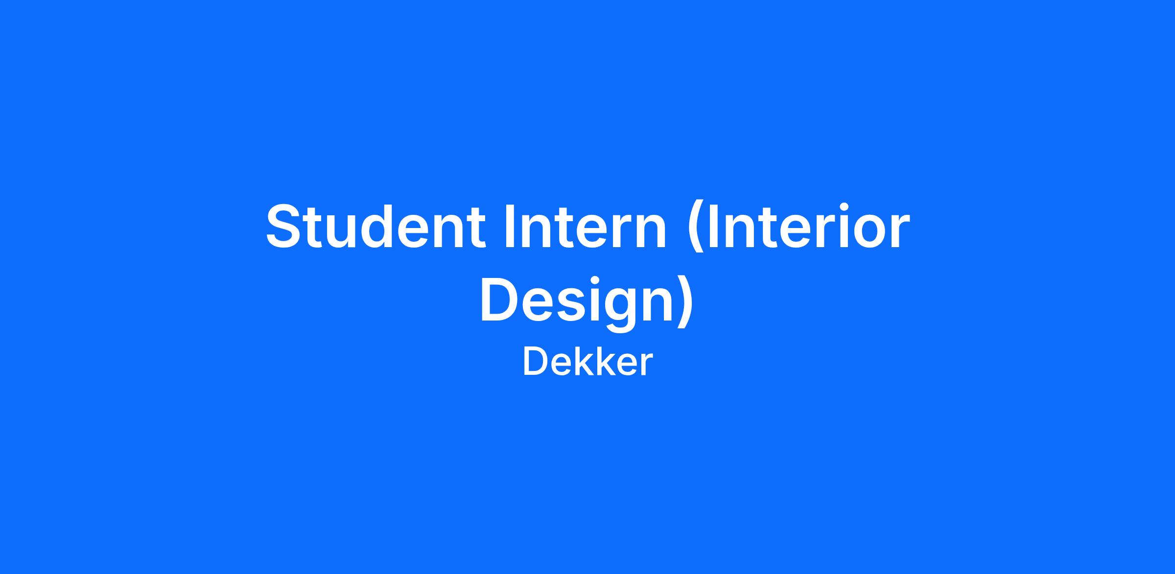 Dekker is seeking a creative and motivated Interior Design Student Intern to join our team for a summer internship. This role offers hands-on experience in all phases of the design process, including concept development, space planning, material selection, and project coordination. The intern will support designers with research, presentations, and client deliverables while gaining exposure to real-world projects in a collaborative studio environment. Ideal candidates are detail-oriented, eager to learn, and passionate about design, with strong communication and basic design software skills.