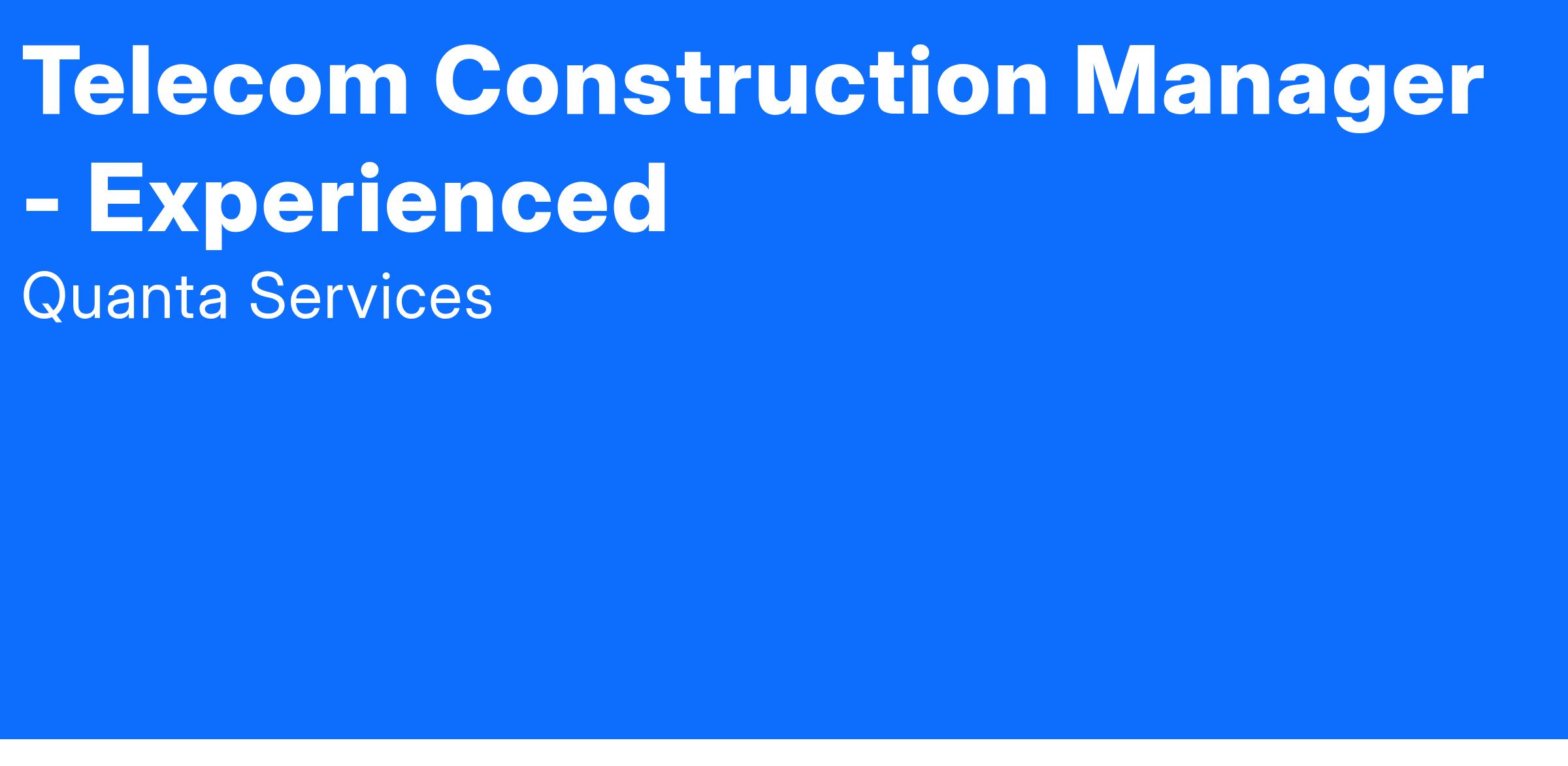 The Telecom Construction Manager will oversee the operations of job site and its daily activities. The Construction Manager will be responsible for the overall progress of the project as well as the scheduling of workers and the delivery of equipment and materials. They will supervise the foreman and crews performing work at the job site. This position will be accountable for the timely completion of the project and ensuring that the project is constructed in strict accordance with plans, specifications, and local codes. This this position will also assist the Project Manager with successful completion of the job.