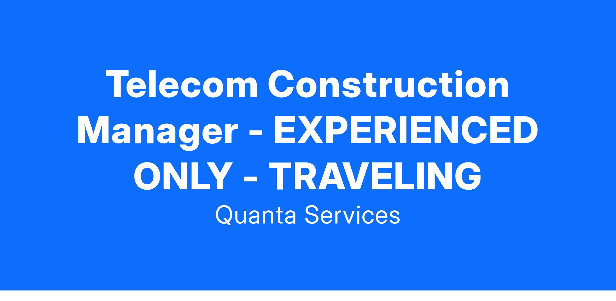 The Telecom Construction Manager will oversee the operations of job site and its daily activities. The Construction Manager will be responsible for the overall progress of the project as well as the scheduling of workers and the delivery of equipment and materials. They will supervise the foreman and crews performing work at the job site. This position will be accountable for the timely completion of the project and ensuring that the project is constructed in strict accordance with plans, specifications, and local codes. This this position will also assist the Project Manager with successful completion of the job.