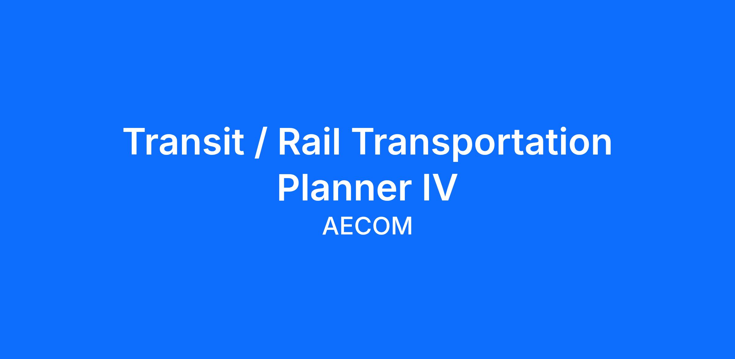 AECOM is seeking a creative, highly talented, and experienced mid-level, Transit / Rail Transportation Planner IV to join our North Texas Transit/Rail team. AECOM's DWF Transit-Rail group has partnerships with and supports all three of the major transit agencies in the DFW area and is hiring a transit planner with agency or consulting experience to join our team.