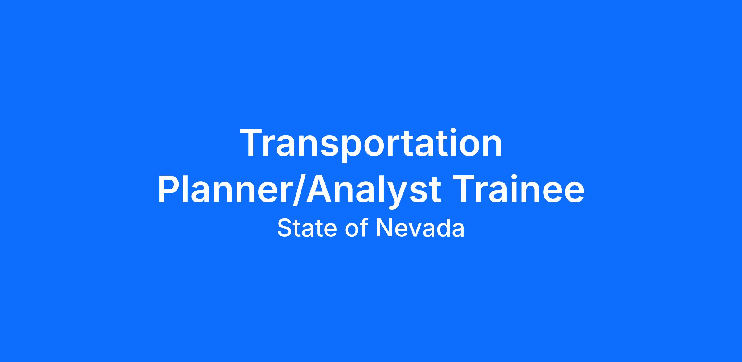 Bachelor's degree from an accredited college or university in engineering, business administration, planning, math, geography, economics, statistics, or related field; OR an equivalent combination of education and experience; OR graduation from high school and four years of experience collecting, compiling, analyzing and reviewing data and developing reports; OR four years of experience as a Transportation Technician II or three years of experience as a Transportation Technician III in Nevada State service.